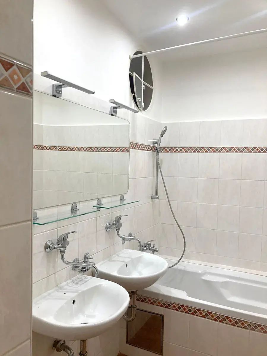 Tento byt se nachází v 1. patře činžovního domu s výtahem v těsné blízkosti metra Náměstí Míru. Je zařízený kuchyňskou linkou s myčkou a kombinovaným sporákem. Koupelna je s vanou a dvěma umyvadly, toaleta je zvlášť. Součástí bytu je prostorná šatna a komora. Nová dřevěná eurookna. V místnostech jsou parkety (nyní probíhá renovace) a plovoucí podlaha v hale. Vlastní kombinovaný plynový kotel. Poblíž domu jsou Riegrovy sady. Výborná dopravní dostupnost. Kauce je dvouměsíční, provize jeden měsíční nájem. Pronajímatel preferuje rodinu nebo pár.