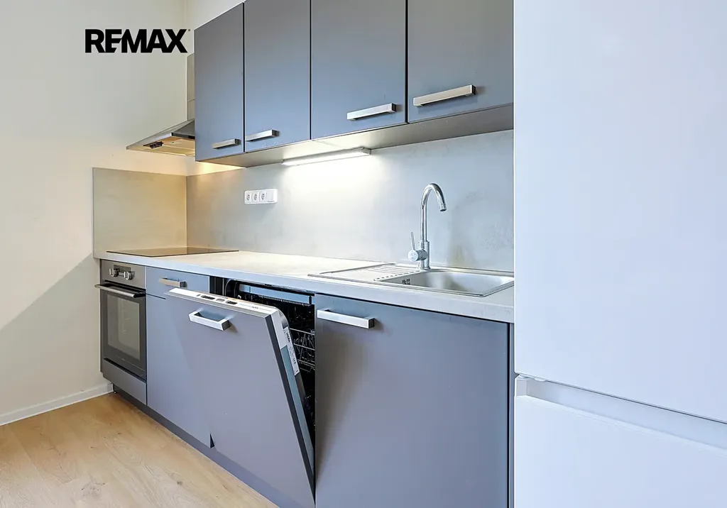 Vybavení kuchyně: lednice s mrazákem, myčka, sklokeramická deska, el. trouba, filtrová digestoř.