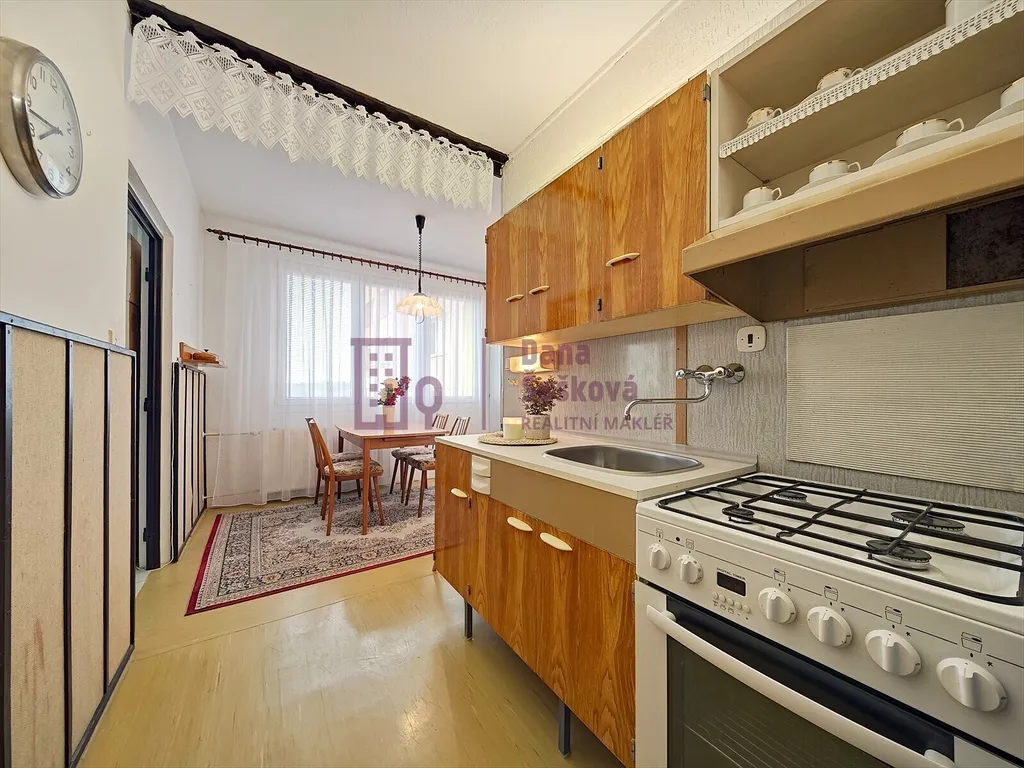 Byt orientovaný na východní stranu je vybavený nábytkem, kuchyňskou linkou, digestoří, plynovým sporákem, pračkou a ledničkou s mrazákem. Po dohodě je možné stávající vybavení zcela nebo částečně vyklidit.