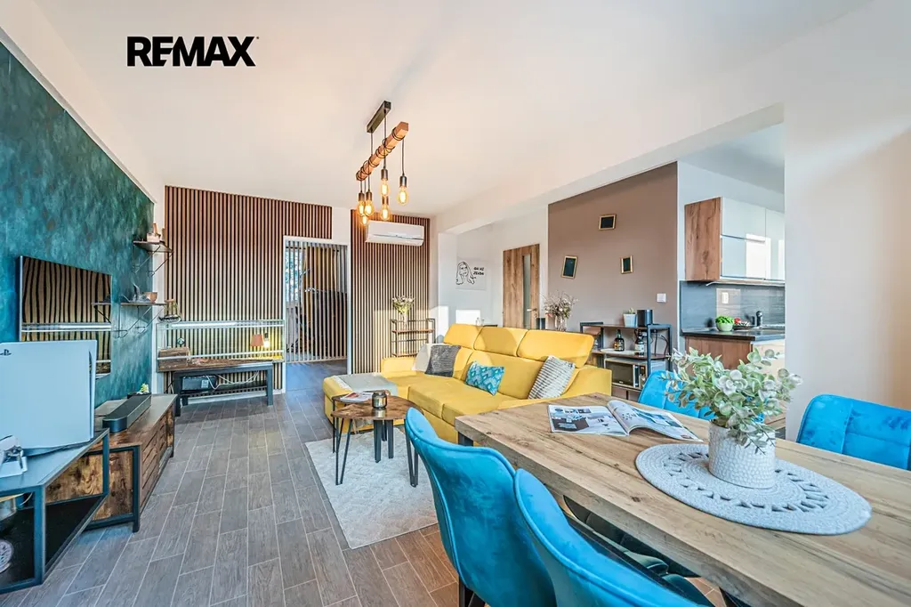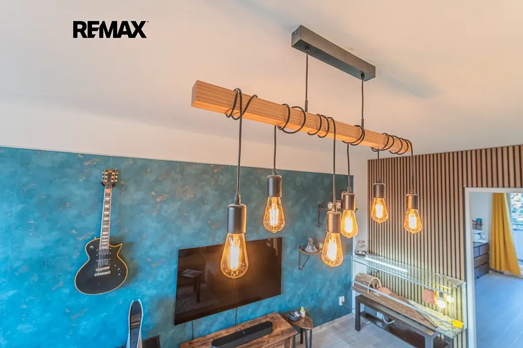 Interiér je moderní, čistý a má svůj rukopis: kombinace dřeva, tlumených tónů a výrazných akcentů působí současně, ale ne okázale.