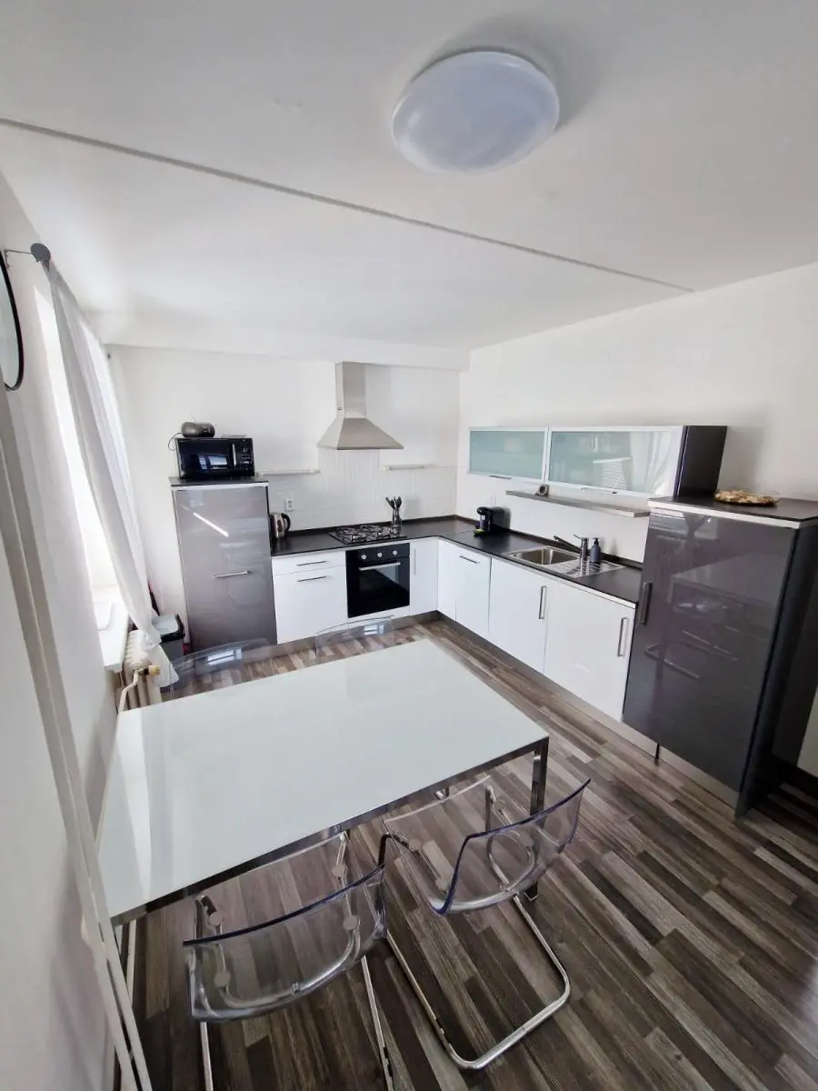 V kuchyni je pěkná kuchyňská linka s vestavnou troubou a moderní plynovou deskou se čtyřmi hořáky. Koupelna je obložena vkusnými obklady, vybavena vanou, umyvadlovou skříňkou a toaletou. Po celém bytě jsou položeny plovoucí podlahy. Celkově se rekonstrukce zaměřila na moderní a vzdušný vzhled. Bytová jednotka se bude pronajímat s vybavením, které vidíte na fotkách.