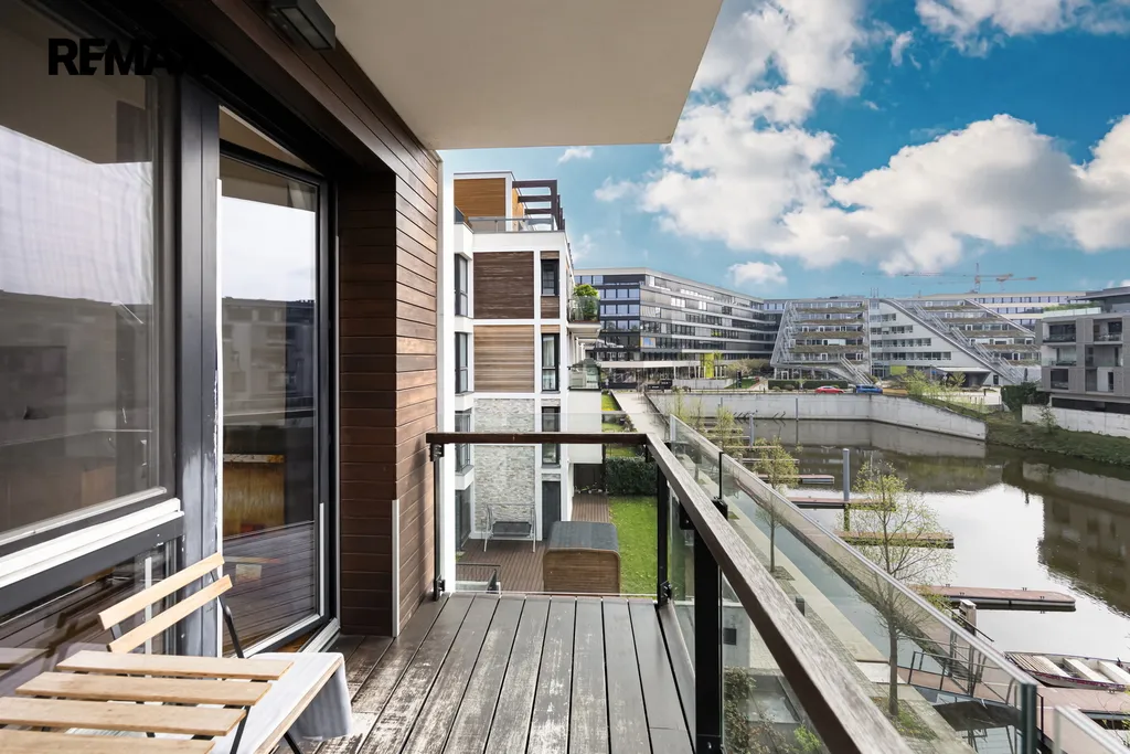 Nabízíme k pronájmu moderní byt o dispozici 3+kk o celkové ploše 82 m² + lodžie 6 m², s parkovacím stáním a sklepní kójí (5,5 m²), situovaný v prestižním rezidenčním projektu DOCK River Watch v Praze 8 – Libeň, v ul. Voctářova.