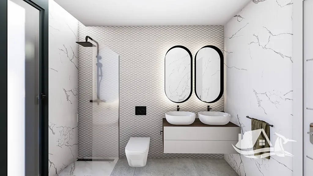 Každý dům je navržen s důrazem na funkčnost, světlo a přirozené propojení interiéru s venkovním prostorem. Dispozice nabízí tři ložnice a tři koupelny, takže poskytuje dostatek prostoru pro rodinné bydlení i pohodlné pobyty s přáteli. Obytná část s kuchyní tvoří přirozené centrum domu a díky otevřenému řešení působí vzdušně a moderně. Celková zastavěná plocha domu je přibližně 104 m² na pozemku o velikosti 107 m² a praktické rozvržení zajišťuje pohodlí při každodenním užívání. Dokončení projektu je plánováno na duben 2027, což dává prostor pro klidné plánování i postupné financování.