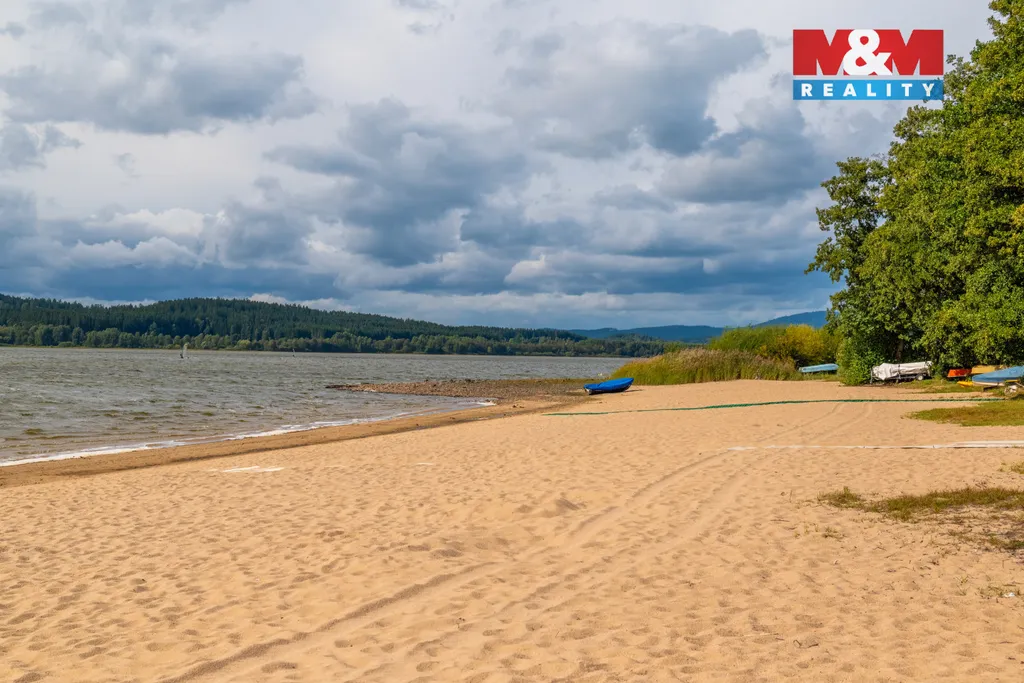 Prodej exkluzivní rekreační chaty u Lipna, vzdálené pouhých 30 metrů od písečné pláže. Tato dobře udržovaná nemovitost je ideální pro rodinnou rekreaci i komerční pronájem. Na pozemku se nachází i samostatný zahradní domek, který slouží jako plnohodnotné extra ubytování pro hosty dále praktická kůlna na nářadí nebo dílnu. Chata je ihned k užívání. Lokalita nabízí přímý přístup k vodě a skvělé zázemí pro všechny aktivity. Jedinečná příležitost pro ty, kteří hledají maximální komfort a bezprostřední blízkost Lipna s kompletním zázemím. Možnost odkupu loděnice přímo na pláži, vybavená elektřinou a navijákem na loď, což je obrovská výhoda pro vodní sporty a milovníky rybaření. Neváhejte a domluvte si prohlídku!!
