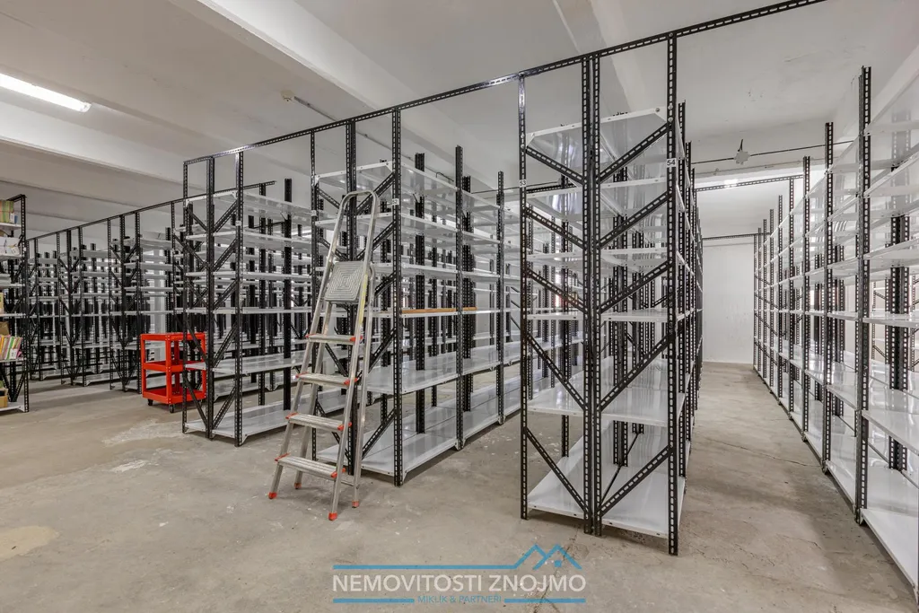 V budově jsou umístěny skladové regály o kapacitě 16000 m (je možné odkoupit i s nemovitostí) a lze je rozšířit až na 18000-20000 m.