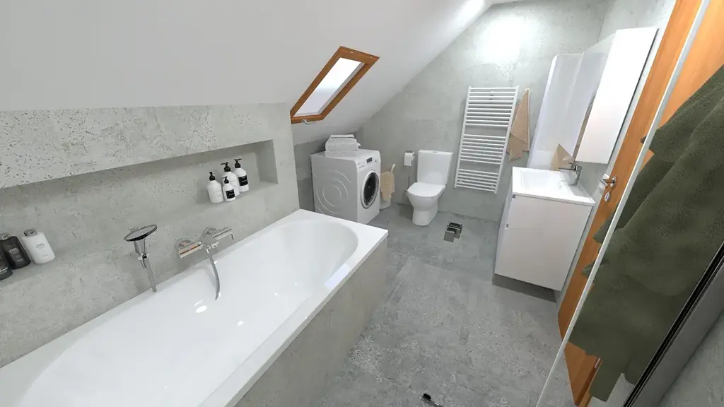 Dům je aktuálně napojen na elektřinu a obecní vodovod. Plynová přípojka a kanalizace se nachází před domem a je možné dům bez problémů napojit. V projektu se počítá s elektrickým kotlem na vytápění a ohřev vody.