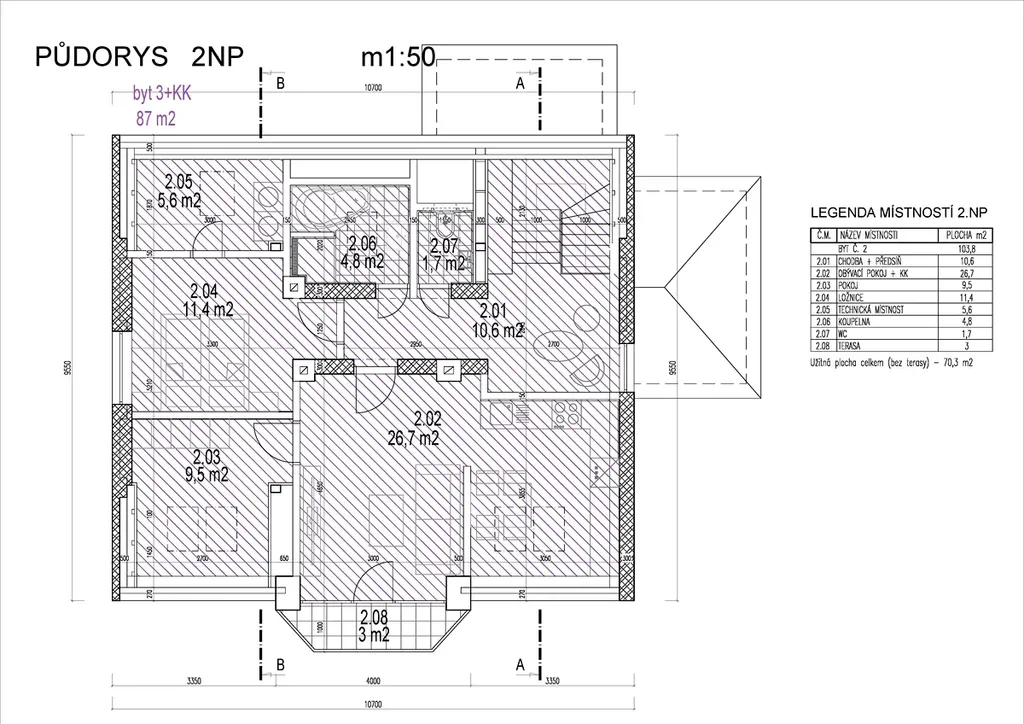 Dům má celkovou obytnou plochu 178 m² a užitkovou plochu 211 m², která je rozložena mezi dvěma nadzemními patry a jedním podzemním podlažím. Dle vytvořené studie a stavebního projektu lze dům přestavět na dvě samostatná bytové jednotky s dispozicí 3+kk, kdy byt ve 2.NP disponuje balkonem a menším podkroví. Obě bytové jednotky budou mít svoje vlastní, oddělené a samostatně přístupné sklepní prostory. Spodní byt v přízemí nabízí potom 78,2 m² užitné plochy a byt ve druhém podlaží potom 87 m². Oba byty počítají s vlastním vstupem, a tedy jsou absolutně na sobě nezávislé. Díky tomu je dům a byty ideální pro rodiny hledající prostor a soukromí. Nicméně lze zachovat aktuální společné prostory a pak může být dům kompletně vícegenerační a nabízet více společných prostor pro rodiny. V současné stavu je dům určen k rekonstrukci, což představuje skvělou příležitost přizpůsobit interiér podle vlastních představ a potřeb, kdy se projekt může změnit dle představ nových majitelů. Po vybudování samostatných bytů lze využít jako investiční příležitost se ziskem z pronájmů.