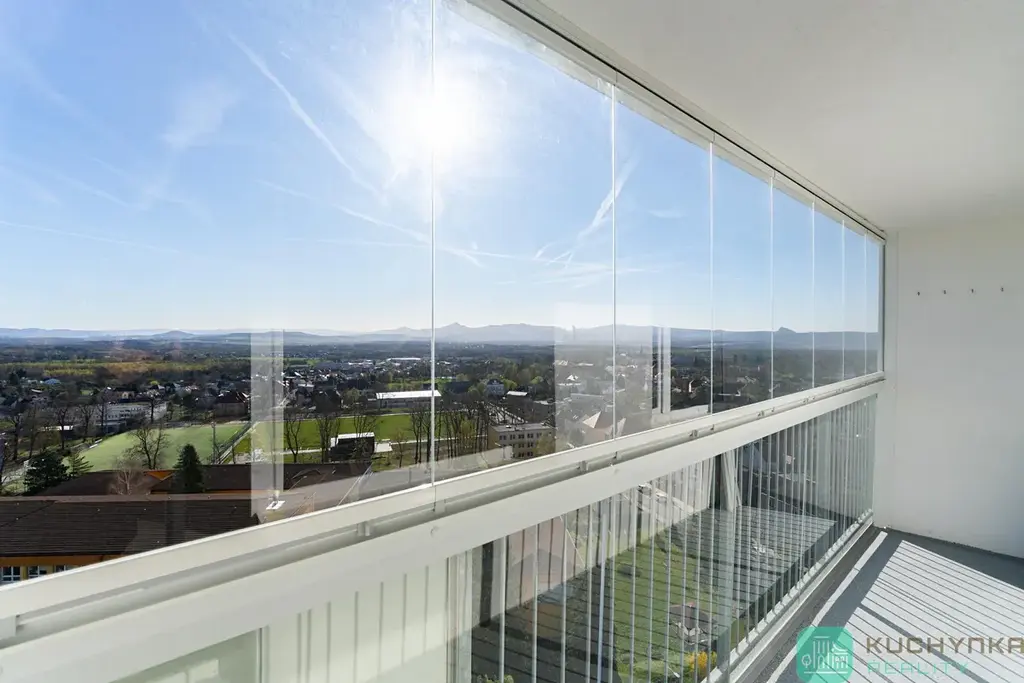 Dvě lodžie nabízí krásný výhled na svahy hor, město s okolní krajinou i České středohoří.