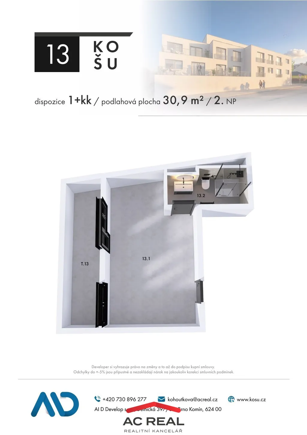 Představujeme vám moderní byt 1+kk s terasou v novostavbě rezidenčního projektu KOŠU, který přináší komfortní bydlení s důrazem na kvalitu, technologie a úsporný provoz. Projekt se nachází v dynamicky se rozvíjející lokalitě Brno – Horní Heršpice, s výbornou dostupností do centra i ke klíčovým pracovním a vzdělávacím místům.