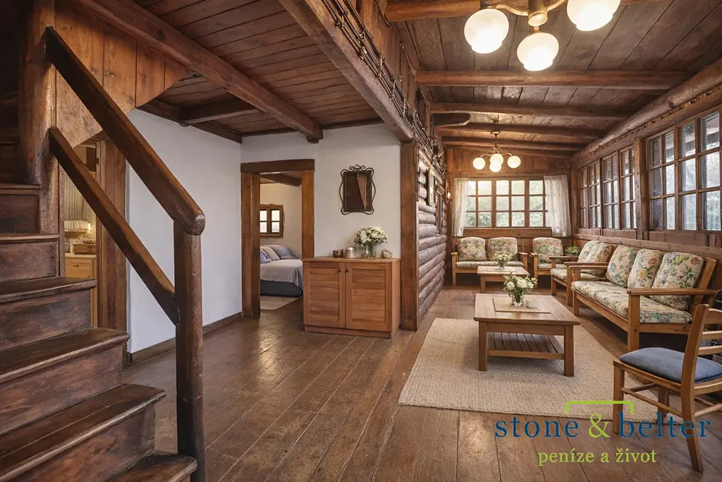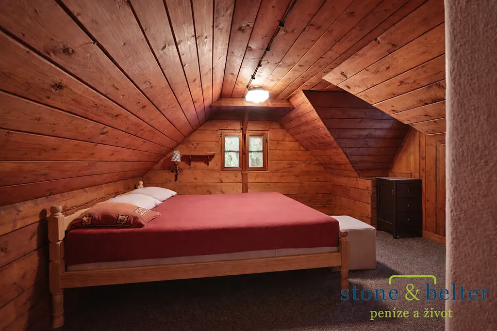 Chata je prodávána včetně vybavení a nabízí příjemnou atmosféru s typickým dřevěným charakterem. Dispozičně zahrnuje obytnou místnost s kamny, kuchyň, ložnici, podkrovní prostor na spaní, verandu s posezením a praktické úložné prostory.