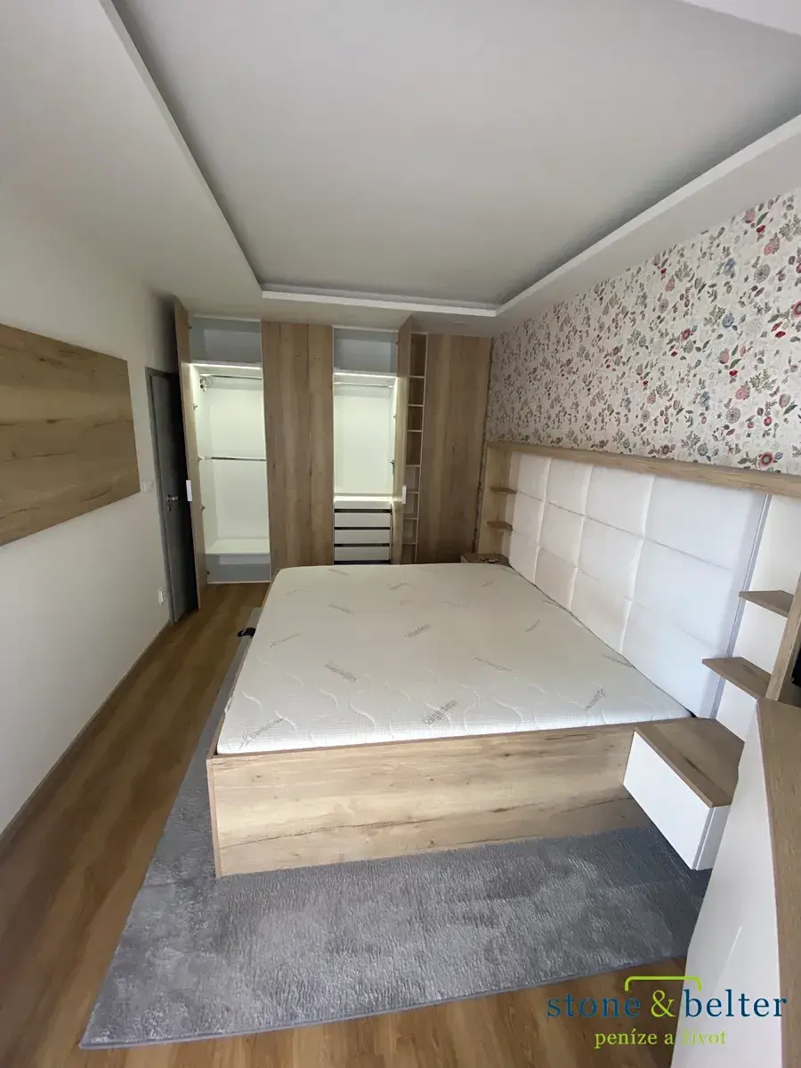 Byt se skládá z obývacího pokoje s kuchyňským koutem (25 m²), ložnice (16 m²), koupelny s toaletou (6 m²), vstupní chodby (4 m²). K bytu dále náleží kryté parkovací stání.