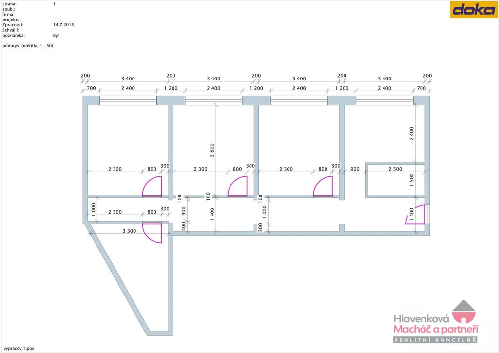 Dispozice bytu je praktická a dobře využitelná (viz půdorys):