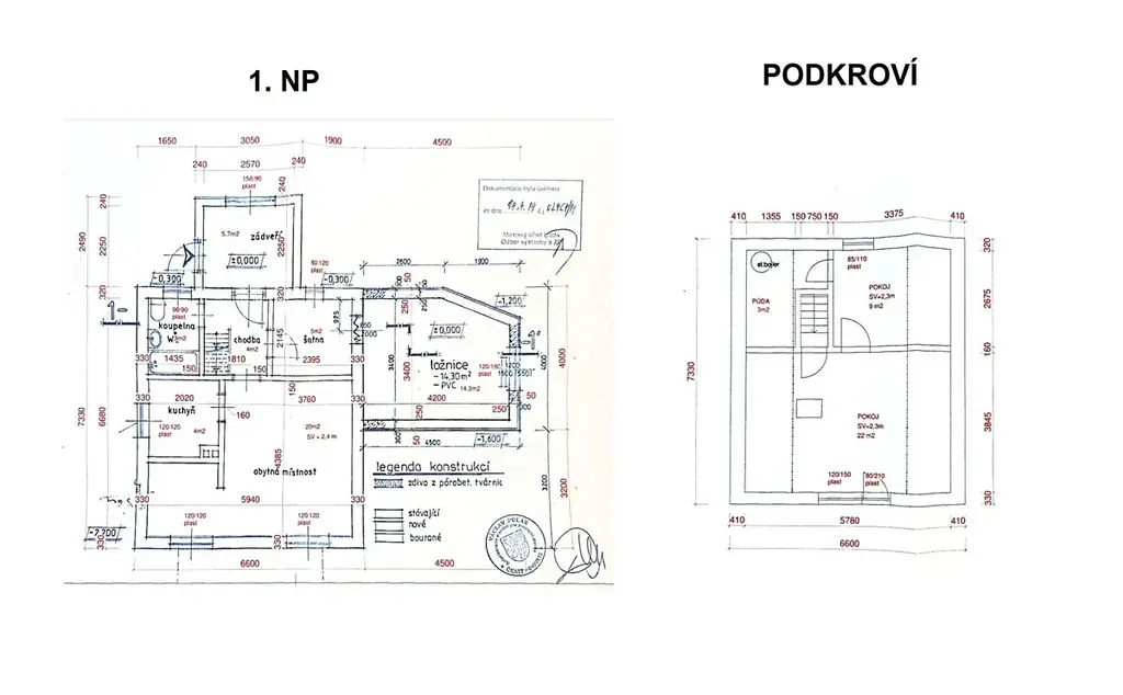 Podlažní dům s obytným podkrovím nabízí dispozici 4+kk o výměře 90 m2 s balkonem, menší půdou a je částečně podsklepený. Vytápění je centrální kotlem na TP + krb v obývacím pokoji, ohřev vody el. bojlerem, el. 230/400 V, voda z veřejného řadu, odpady svedeny do vybírací jímky. Dům je zděný se zateplenou fasádou, krov dřevěný, střecha z pálených tašek, komín se dvěma průduchy, okna a vstupní dveře plastové, podlahy plovoucí a dlažba.