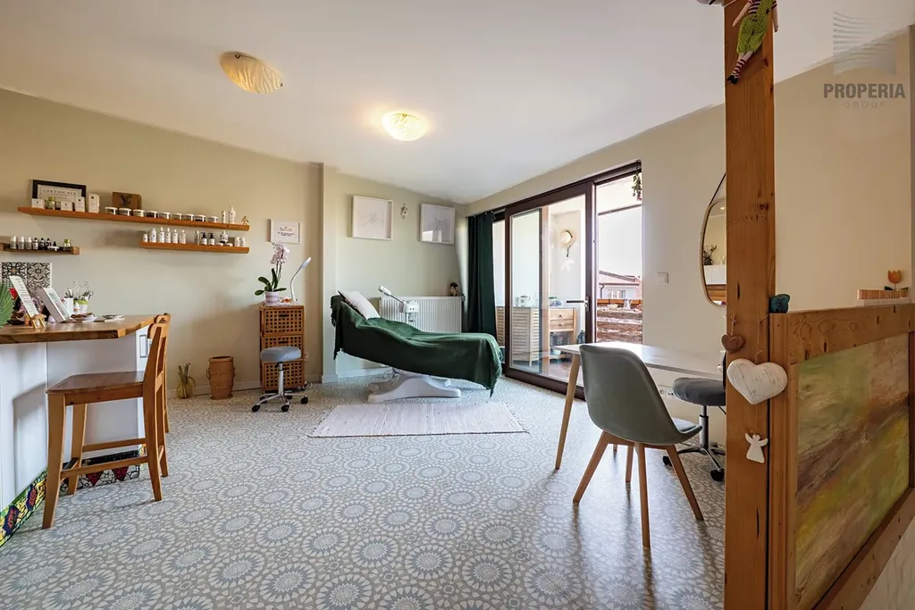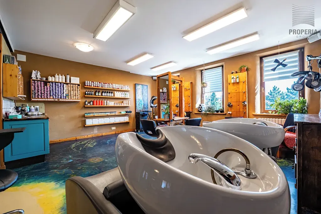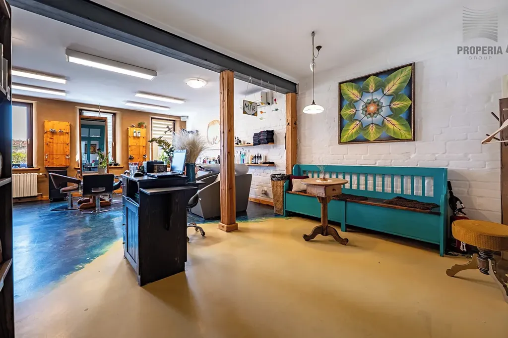 • 1. patro (Komerce/Bydlení): Nyní v provozu jako zavedený kadeřnický salon. Prostor lze velmi snadno transformovat na samostatnou bytovou jednotku 2+1, nebo 3 kk (cca 54 m²).