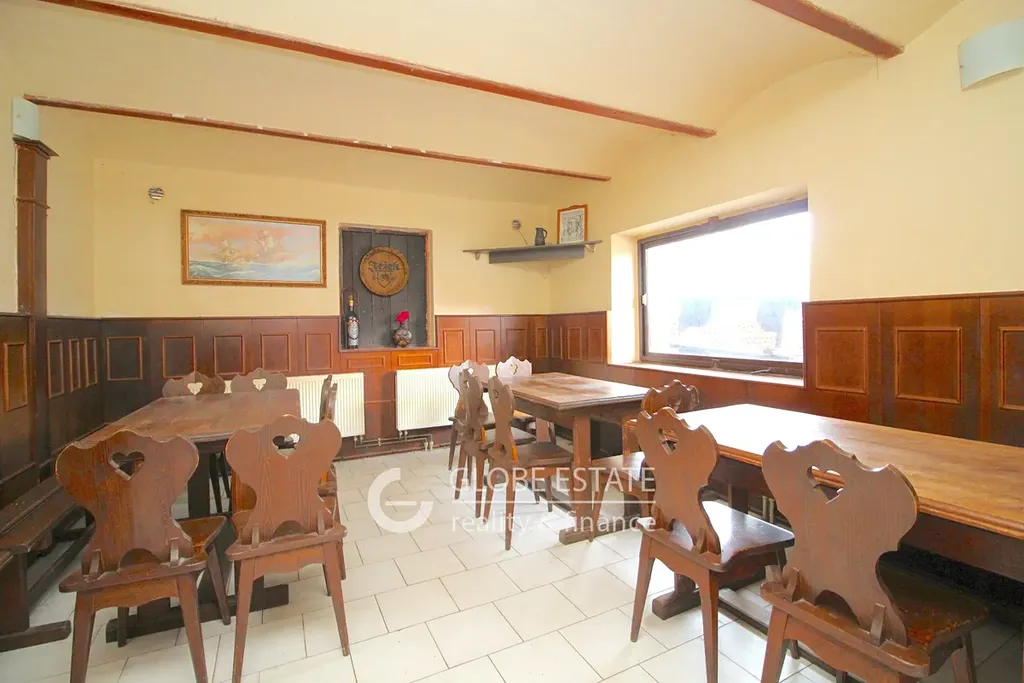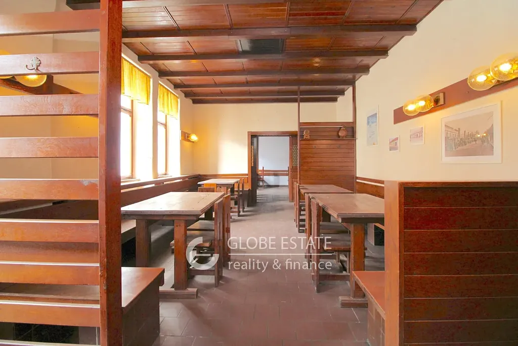 Současná struktura komplexu nabízí obrovskou flexibilitu a potenciál. Naleznete zde restauraci o velkorysé ploše přibližně 170 m2 a klep cca 60 m2, útulnou vinárnu o 55 m2, a dále kancelářské prostory o velikosti zhruba 60 m2, které disponují vlastním vstupem přímo z hlavní ulice, což je ideální pro viditelnost a dostupnost. Dále jsou k dispozici sklady a venkovní toalety o celkové ploše cca 55 m2, které doplňují funkčnost celého areálu.
