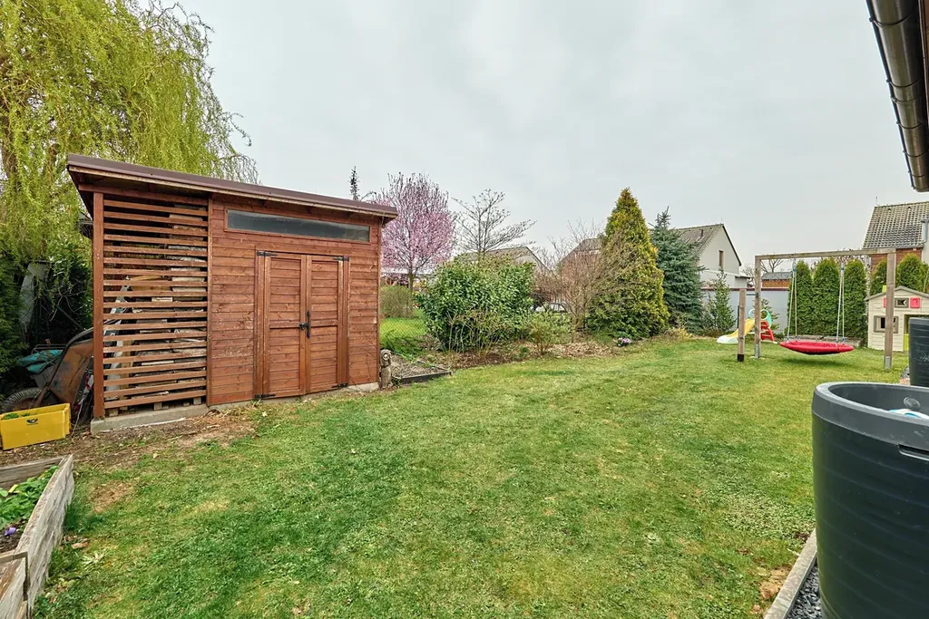 Prostorný dům stojí na skvělé adrese kousek od okraje Prahy ve směru na Brandýs nad Labem. Klidná obec, jejíž historie sahá až do 13. století nabízí skvělou dostupnost do hlavního města. Během několika minut dojedete na nájezdy dvou dálnic - první ve směru na Hradec Králové a druhou směrem na Mladou Boleslav. Samotný dům, jehož dispozici vidíte na půdorysu je dispozičně řešen jako 3KK a nabídne prostornou garáž. Rozlehlý obývací pokoj s kuchyní vybavenou vestavnými spotřebiči doplňuje světlý výklenek, ve kterém je situován jídelní stůl a vcházíme z něho na velkou terasu. Tento výklenek (zimní zahradu), lze případně zcela oddělit a vytvořit tak další samostatnou místnost. Terasa je vybavena moderním hliníkovým zastřešením, které je vybaveno dálkovým ovládáním, jímž lze stáhnout boční stěnu a dále stínění, aby vám zde bylo příjemně i v horkých letních dnech. Dům je obklopen akorát velkou udržovanou zahradou, která disponuje zahradním domkem, houpačkou pro děti a vyvýšenými záhony. Komfortní vjezd na pozemek zajišťuje brána s ovladačem, elektrická vrata do garáže jsou samozřejmostí. Komfort zajišťují dvě koupelny, z nichž 1. disponuje sprchovým koutem a WC a druhá pak vanou a WC. Vytápění zajišťuje tepelné čerpadlo v kombinaci s podlahovým topením.