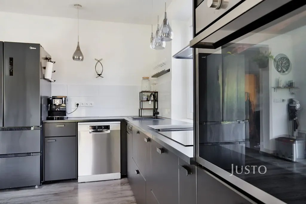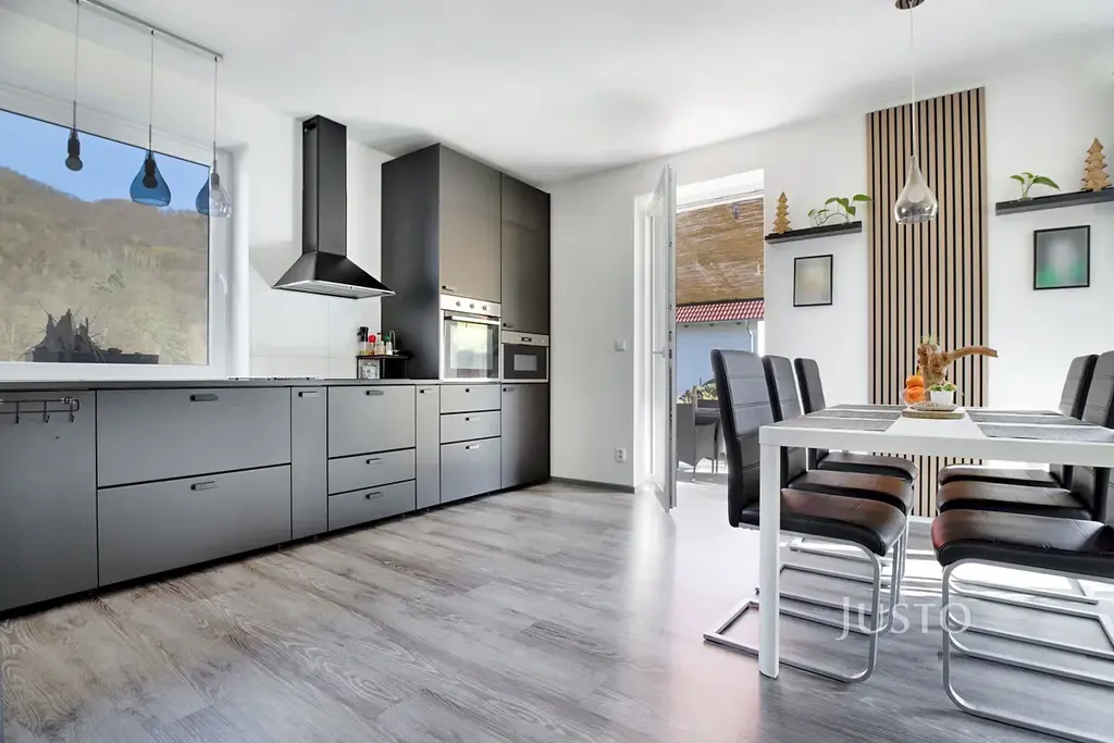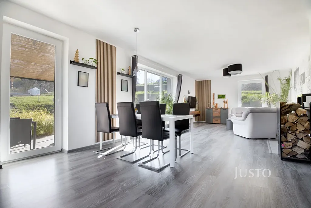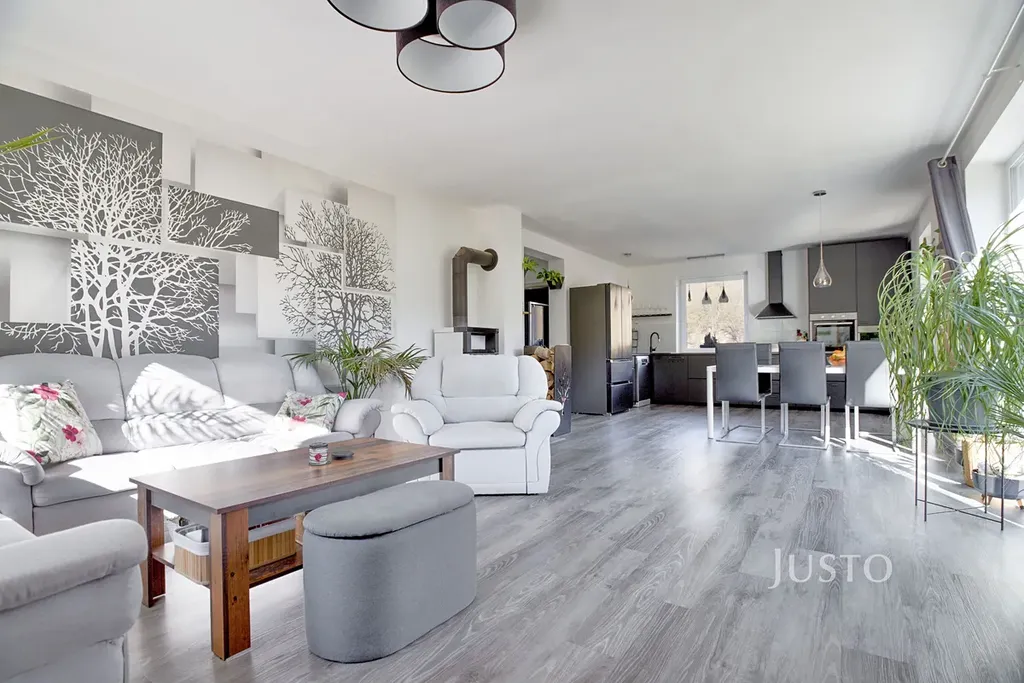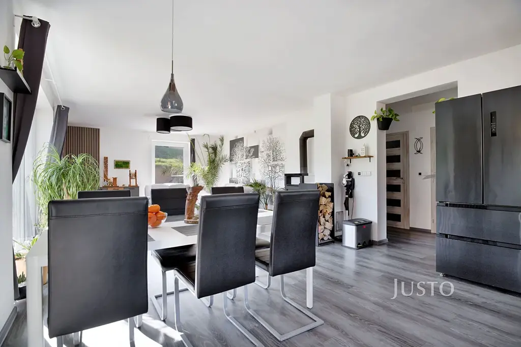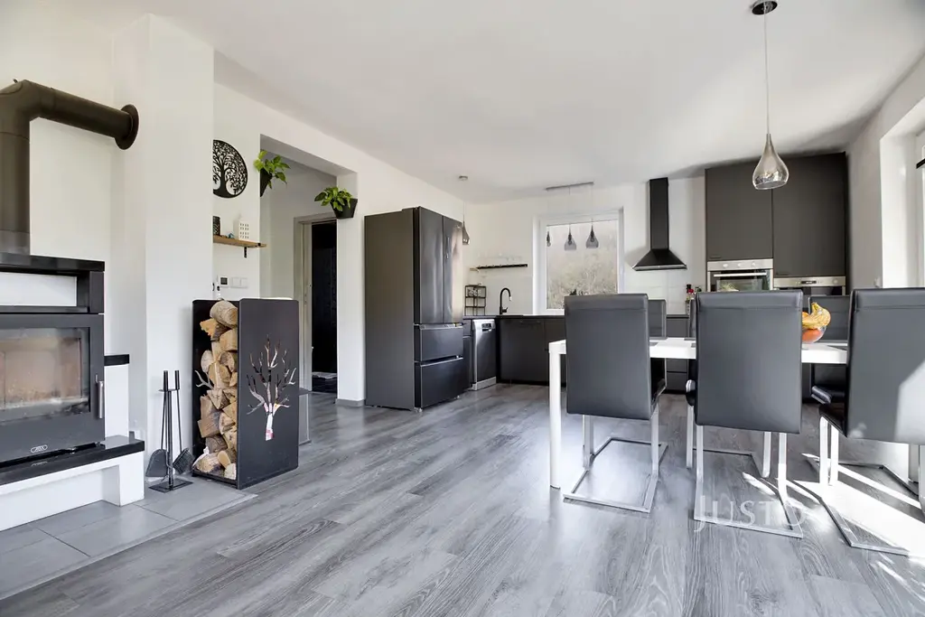 • kuchyňský kout plynule navazující na velký obývací pokoj se vstupem na zahradu