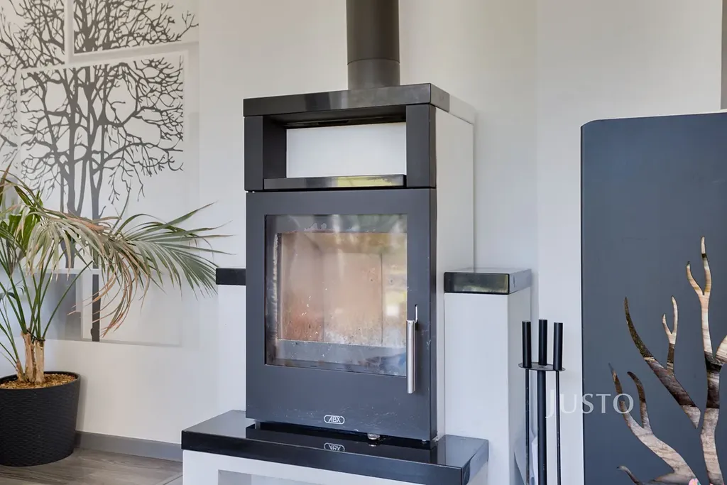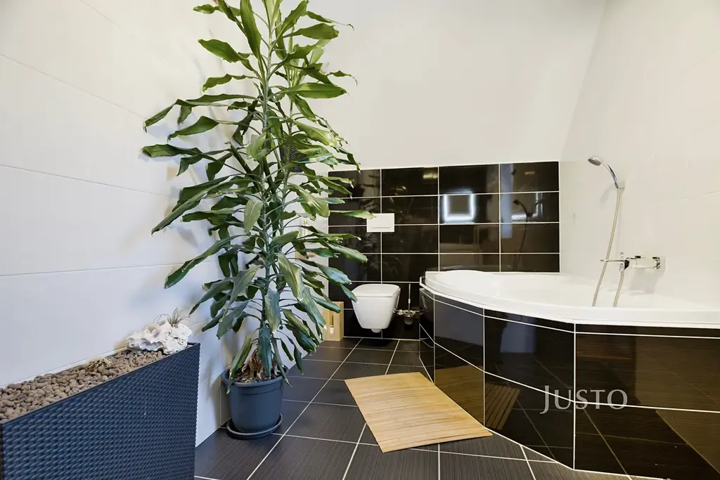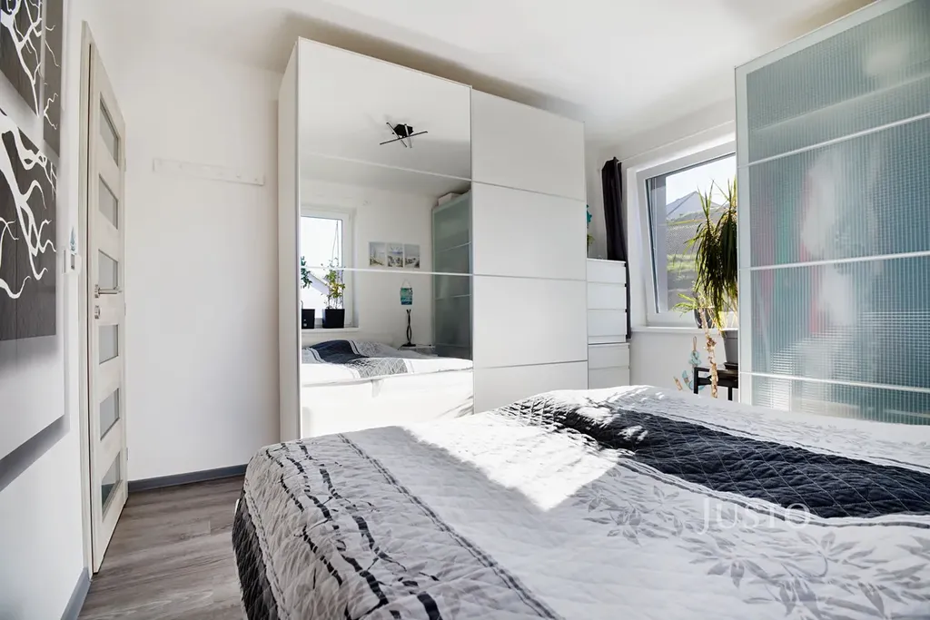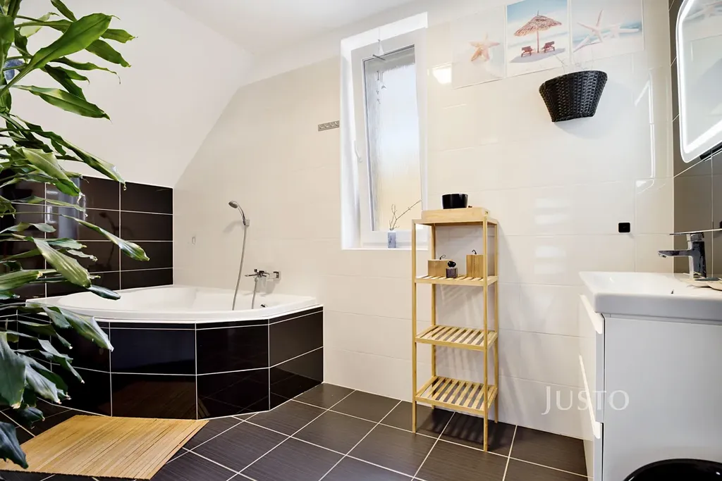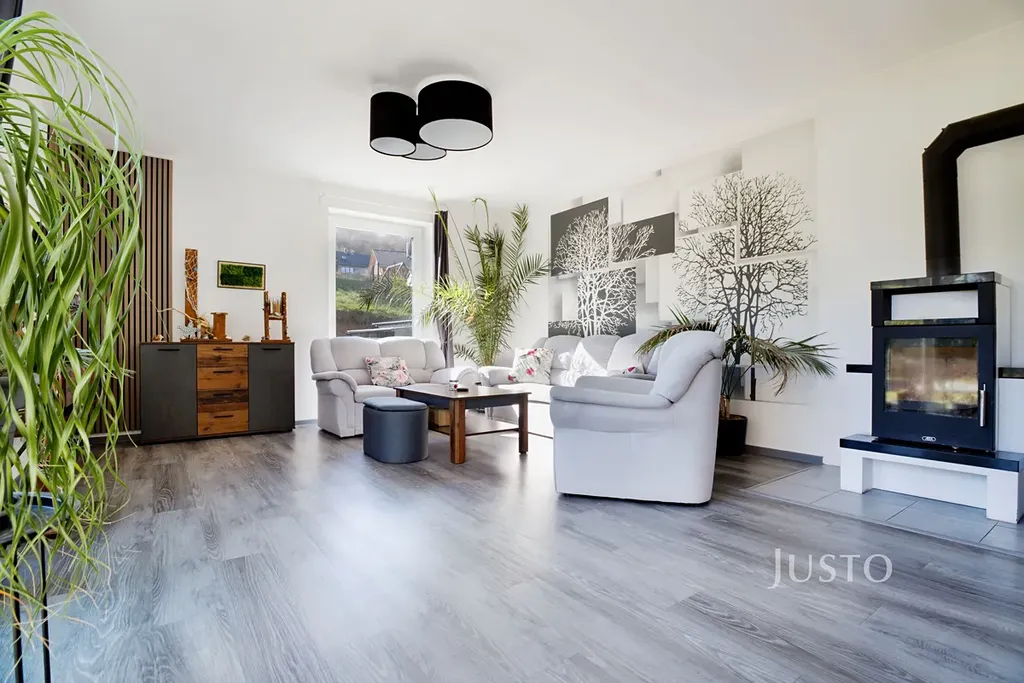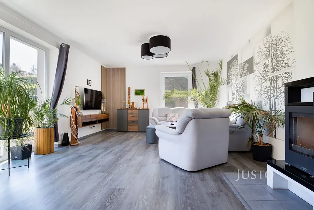 • o příjemné rodinné teplo se stará podlahové vytápění (každá místnost má termostat), které lze doplnit krbovými kamny na dřevo. Ohřev vody je zajištěn bojlerem na 250 l.