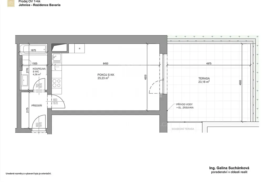 Nabízíme k pronájmu prostorný byt v novostavbě s terasou, sklepem a venkovním parkovacím stáním v prestižní Rezidenci Bavaria. Tento byt se nachází v jedinečné lokalitě, která osloví všechny, kdo hledají klidné bydlení v zeleni s dobrou dostupností do centra města. Lokalita je navíc obsluhována pravidelnými nočními rozjezdy městské hromadné dopravy. Dispozice bytu: Předsíň se vstupem do koupelny, která je společná s WC, a dále do obytné místnosti. Soukromí zajišťují elektricky ovládané předokenní žaluzie. Pro větší komfort je na okně otevírací síť. V bytě je instalováno podlahové teplovodní topení, které přispívá k vysokému komfortu bydlení. Vybavení bytu: moderní kuchyňská linka vybavená vestavěnými spotřebiči - lednice s mrazákem, myčka, sklokeramická varná deska, trouba, solitérní digestoř s odtahem do komína. J tu prostor i pro umístění mikrovlnné trouby. Kuchyňská linka i celý byt jsou opatřeny úspornými LED svítidly. Byt má bezpečnostní dveře. Terasa je vybavena osvětlením, elektrickou zásuvkou a přívodem vody, což umožňuje maximální využití venkovního prostoru. Díky poloze domu ve svahu je byt situován ve 3. podzemním podlaží z celkového počtu čtyř podzemních podlaží a čtyř nadzemních podlaží. Majitel si vyhrazuje právo vybrat kupujícího na základě jím zvolených kritérií. Pro více informací a prohlídku mě kontaktujte. Prohlídky jsou možné po předchozí domluvě. Těším se na Vaše dotazy.Galina Suchánková.