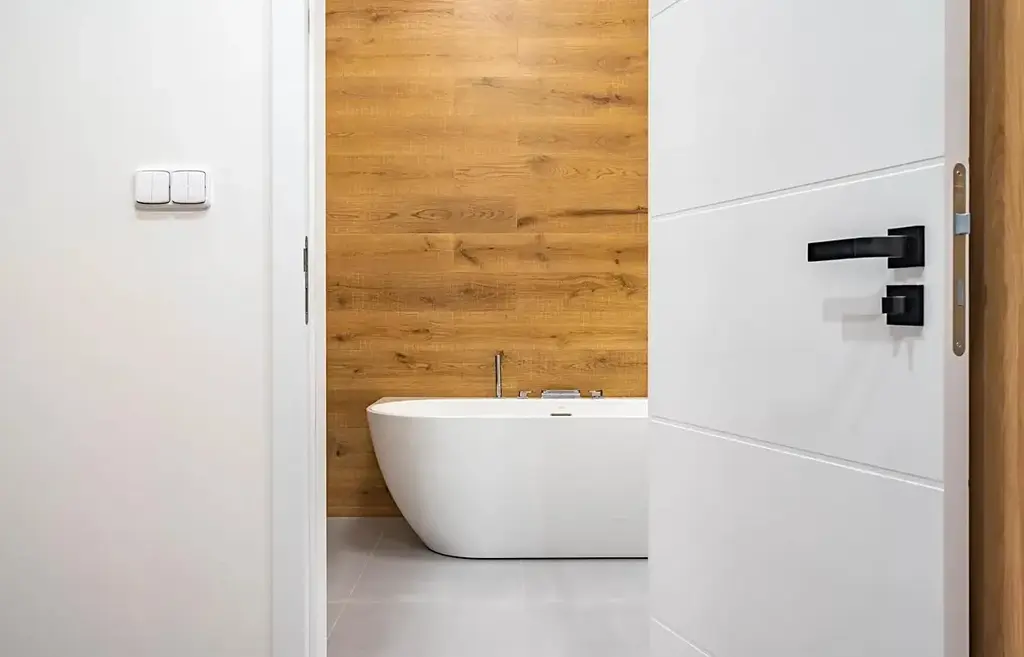 V koupelně naleznete volně stojící vanu značky Ravak, a špičkový design značek Concord a Aparici.