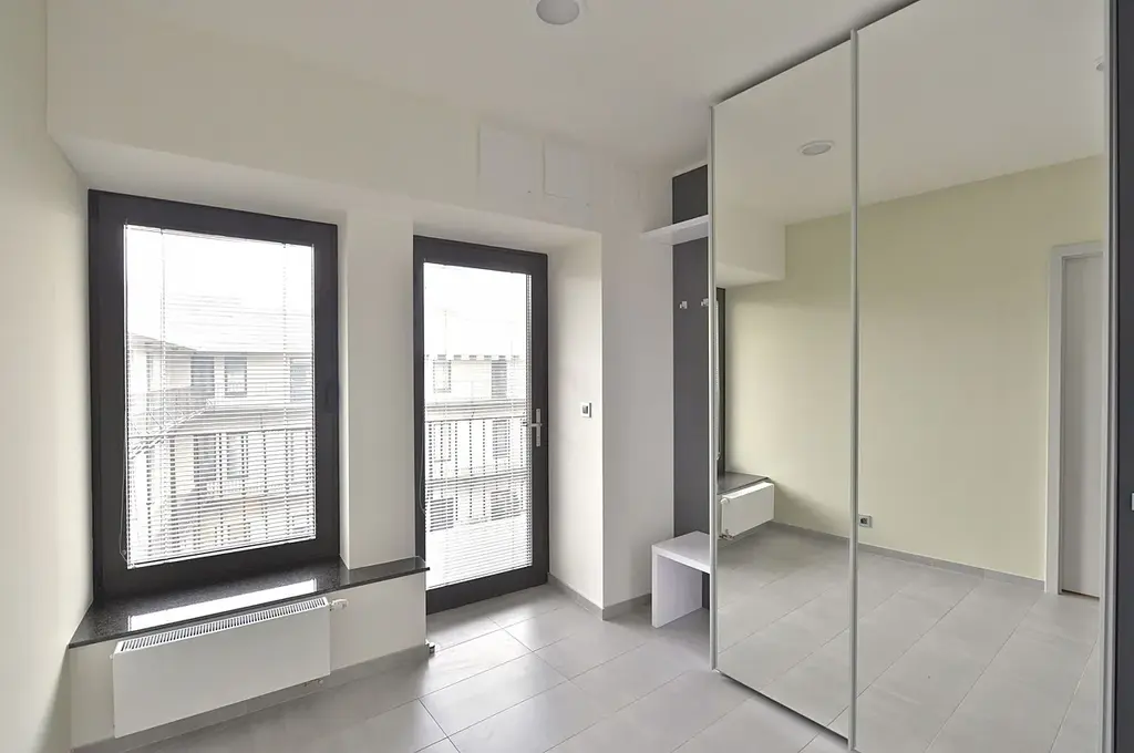 Velká okna, dřevěné podlahy, vestavěné skříně, klimatizace, satelitní TV, internet, video telefon, mikrovlnná trouba, myčka, pračka. Kamerový a zabezpečovací systém v budově. Parkování možné v podzemní garáži v domě. Možno pronajmout zařízený za vyšší nájemné.