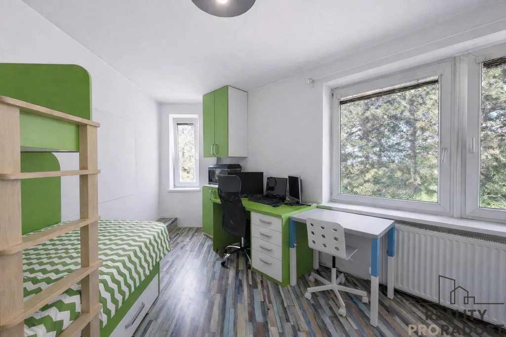 Byt nabízí příjemné bydlení s výhledem do zeleně a velkou výhodou je vlastní vytápění plynovým kotlem – máte tak plnou kontrolu nad náklady.