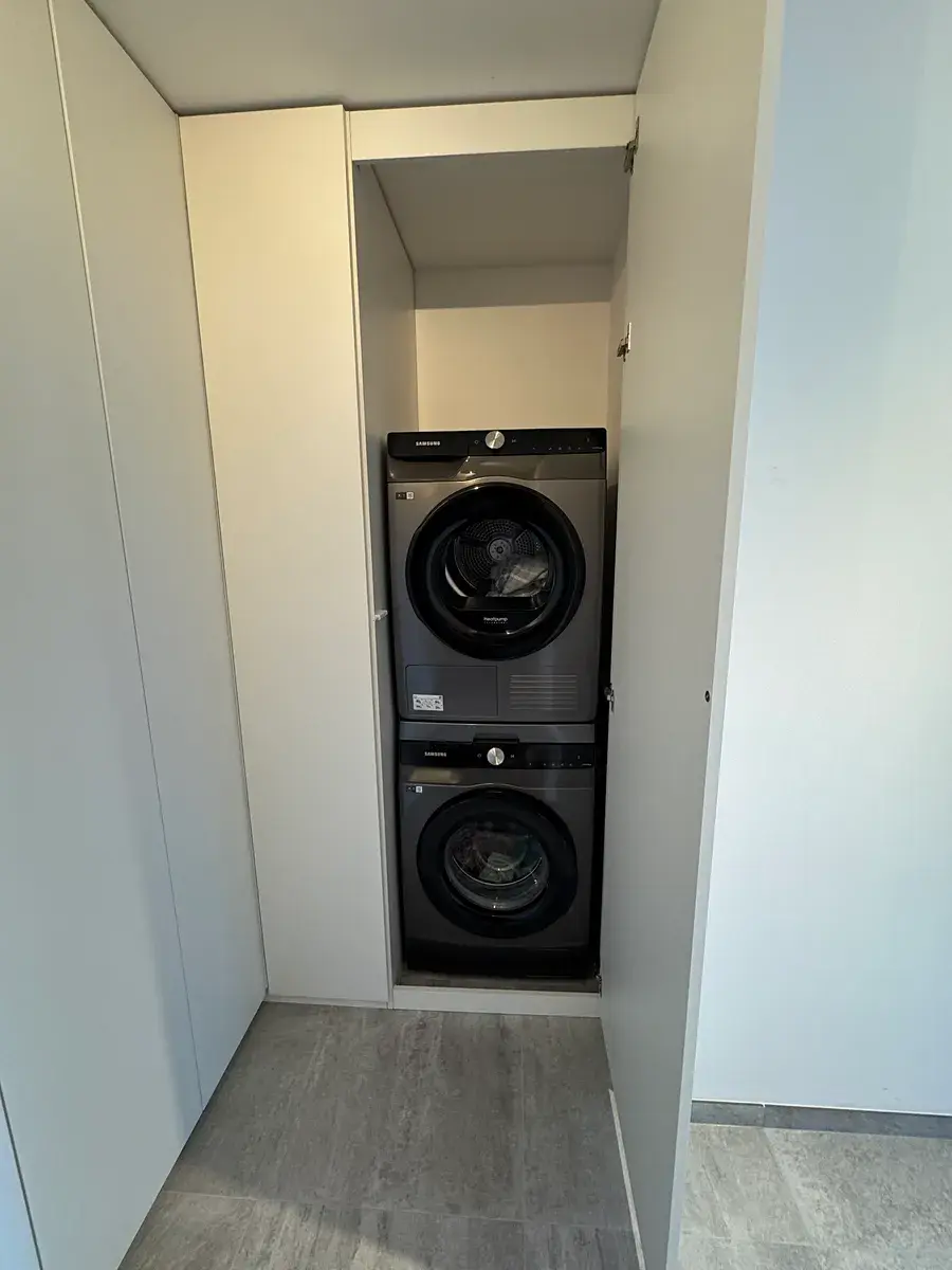 Byt je vybaven vestavěnými skříněmi v chodbě, pračkou a sušičkou. Toto vše zůstává k dispozici nájemcům.