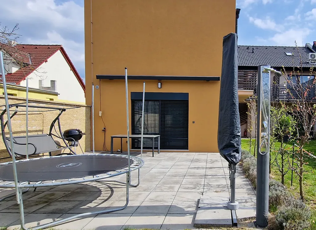 K užívání je společná zahrada s možností grilování, uložení kol či koloběžek, a úklidová místnost v prostoru chodby. Zahrada je oplocena s brankou a vjezdovou bránou.