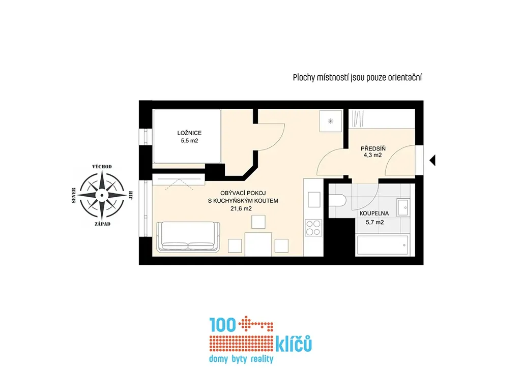 Realitní kancelář 100klíčů vám nabízí pohodový byt o dispozici 1+1 v osobním vlastnictví v moderní budově z roku 2008 v Praze - Modřanech, Vorařská 8.