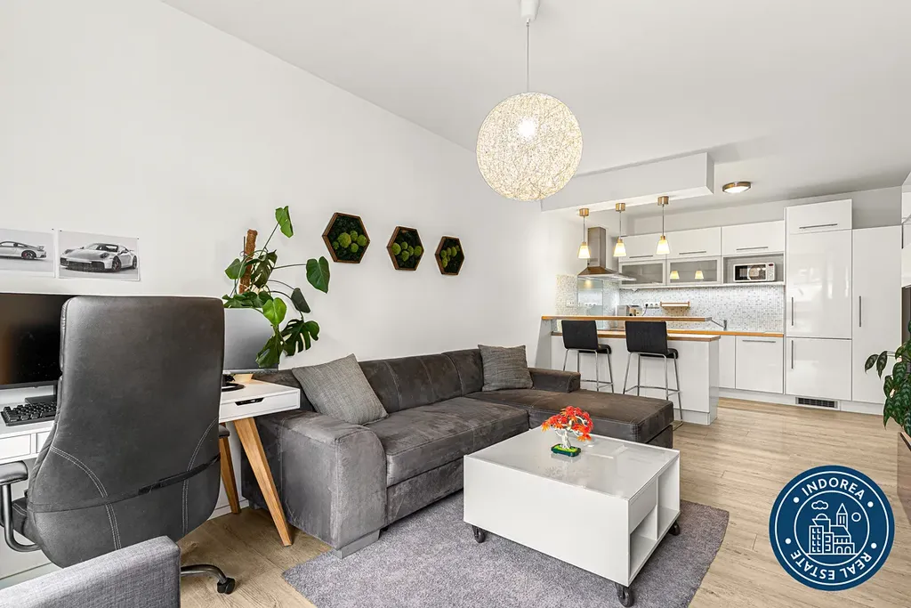 Krásný a velmi praktický byt je kompletně zařízen a má vše, co může jednotlivec nebo pár potřebovat. Prostorný obývací pokoj, velkorysou vstupní halu s komorou, koupelnu s toaletou a s místem na pračku, ložnici s dostatkem úložného prostoru a v neposlední řadě také bezmála pětimetrovou lodžii.