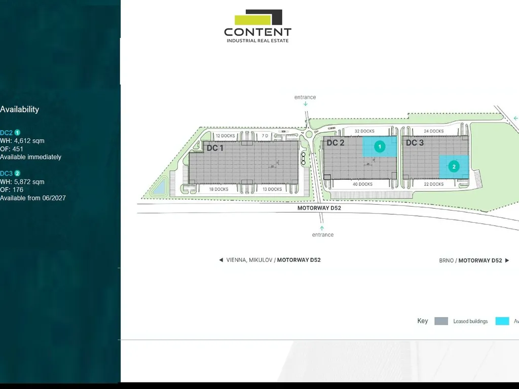 - k dispozici také další samostatná jednotka 4612 m² (budova DC2)