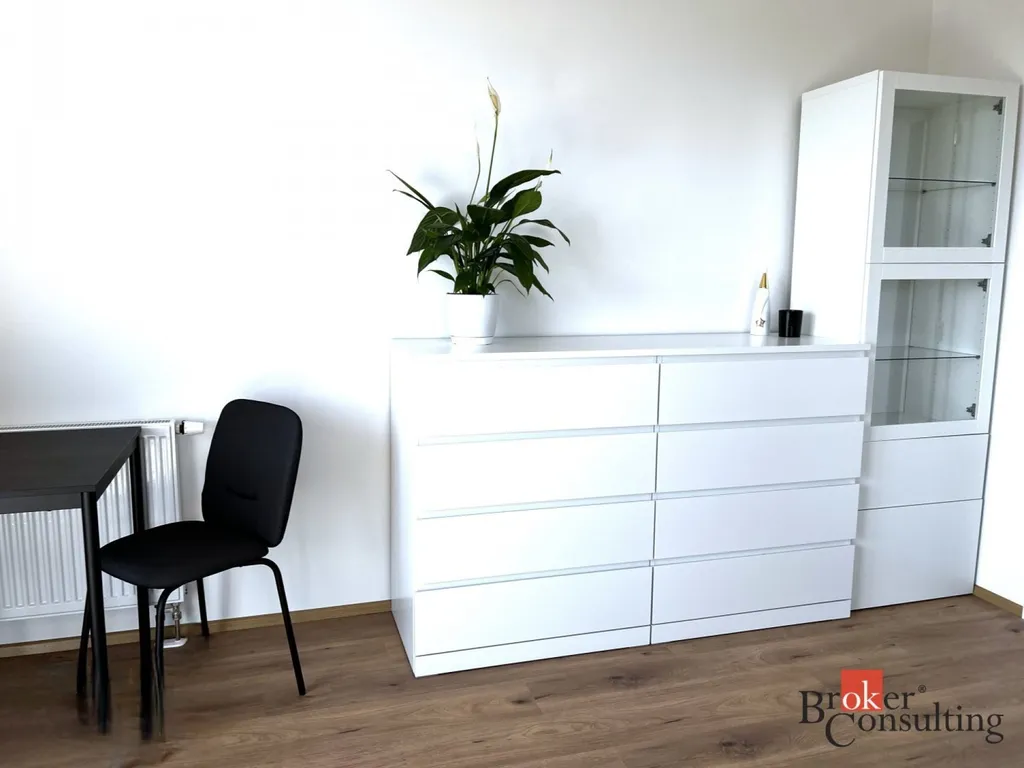 V místnosti se dále nachází 3 skříňky, stůl a židle.