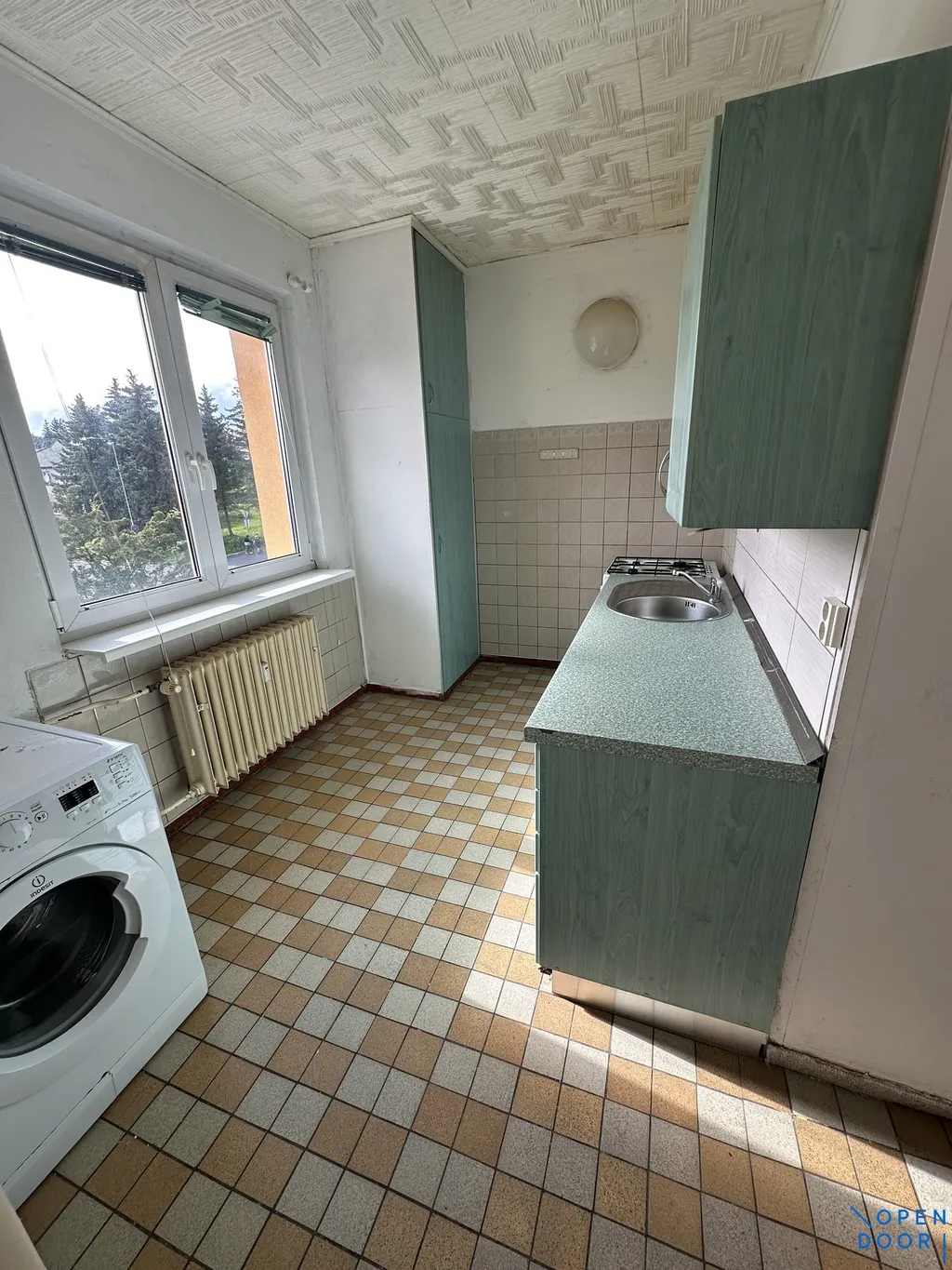 Byt nabízíme částečně zařízený plynovým sporákem s elektrickou troubou, a dále pronajímatel může nájemcům zanechat pračku. V obou pokojích jsou parkety, v kuchyni je dlažba a v chodbě je podlaha krytá PVC. Chodba je vybavena vestavěnou skříní, které slouží jako úložný prostor. koupelna je se sprchovým koutem, umyvadlem a přípojkou na pračku; samostatná toaleta.