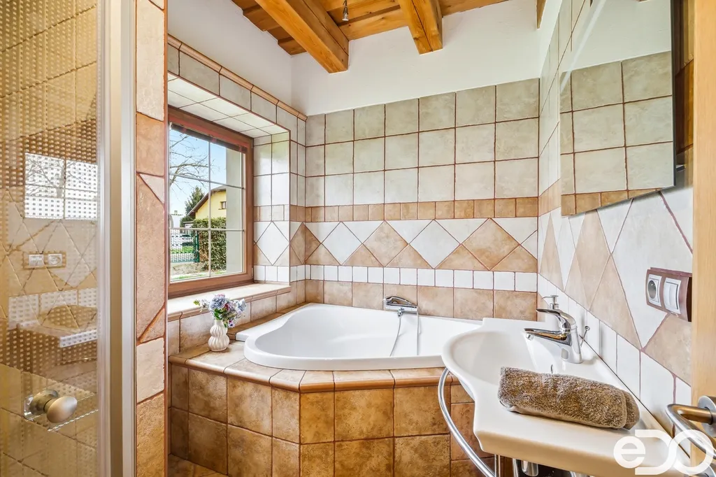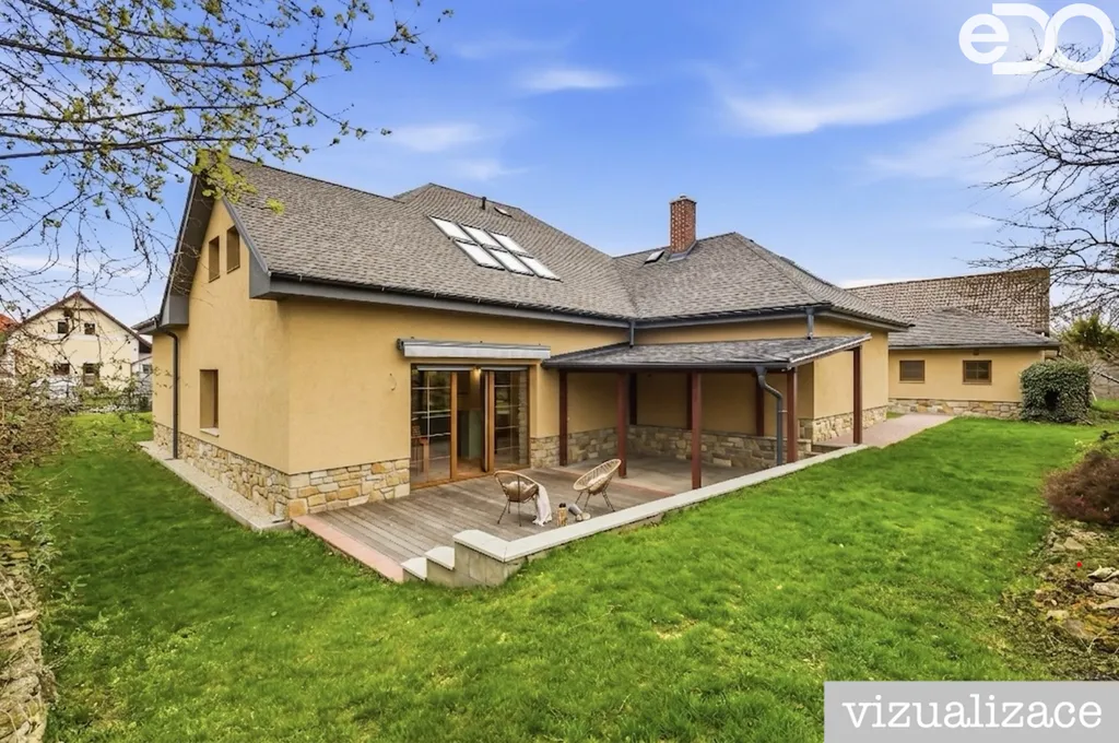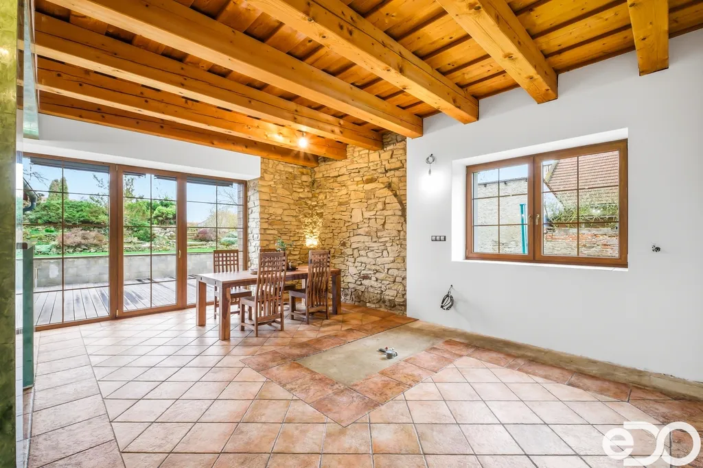 Dům o dvou podlažích nabízí podlahovou plochu cca 326 m² (plus zahradní domek, garáž a dílna) a stojí na pozemku o výměře 2 464 m². Díky své dispozici je ideální pro dvougenerační bydlení nebo kombinaci domova s podnikáním. Interiér zaujme původními kamennými zdmi, benátskými štuky, masivními prvky a vysokým standardem materiálů. Zahrada vás okouzlí prostorem a upravenou skalkou.