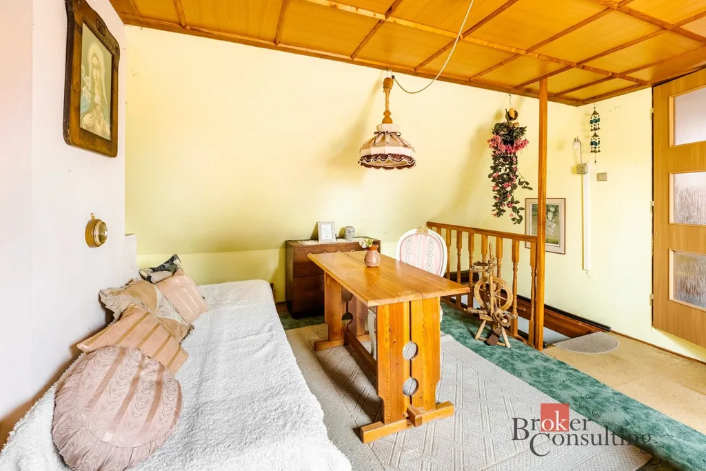 Dispozice chalupy je 4+1 s obytným podkrovím. K nemovitosti náleží garáž/dílna, dva sklepy, vejminek se vstupem na zahradu a zastřešená pergola.