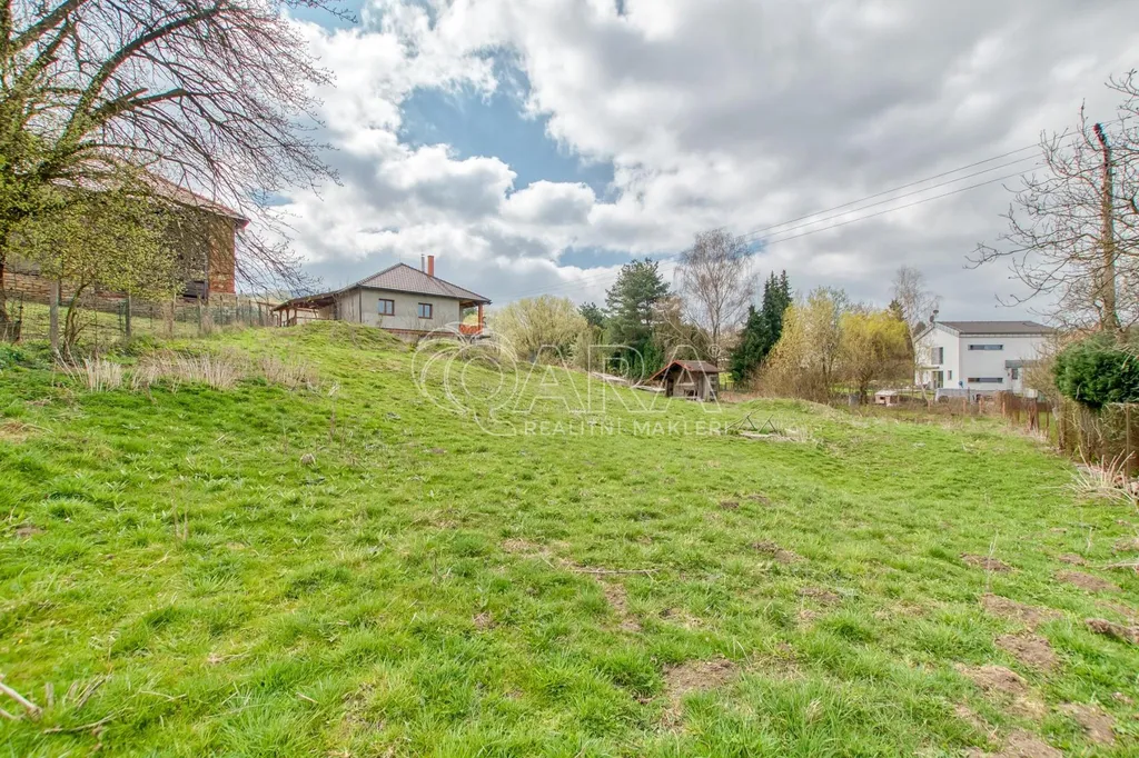 Před i za domem je dostatek místa pro zahradu i další využití. Vedle domu najdete přístřešek pro auto. Zadní část zahrady je svažitá, ale celková plocha 3 731 m² dává dostatek prostoru pro smysluplné využití. Jedná se o stavební parcelu v celém rozsahu a na okraji pozemku protéká potok.