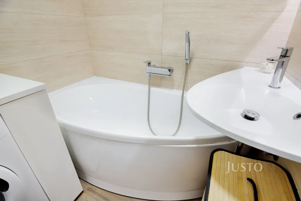 Dominantou bytu je prostorný obývací pokoj, jehož součástí je na míru vyrobená obývací skříň, která je zahrnuta v ceně. Na obytný prostor plynule navazuje moderní kuchyňská linka na míru s ostrůvkem, plně vybavená vestavěnými spotřebiči.