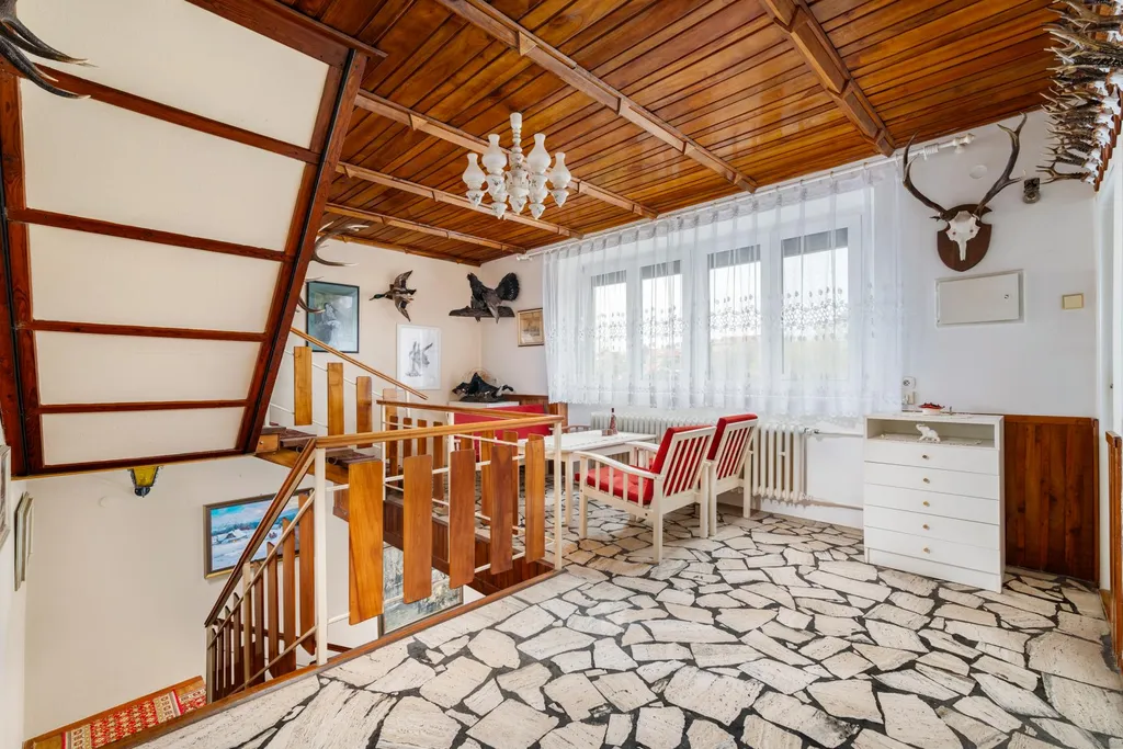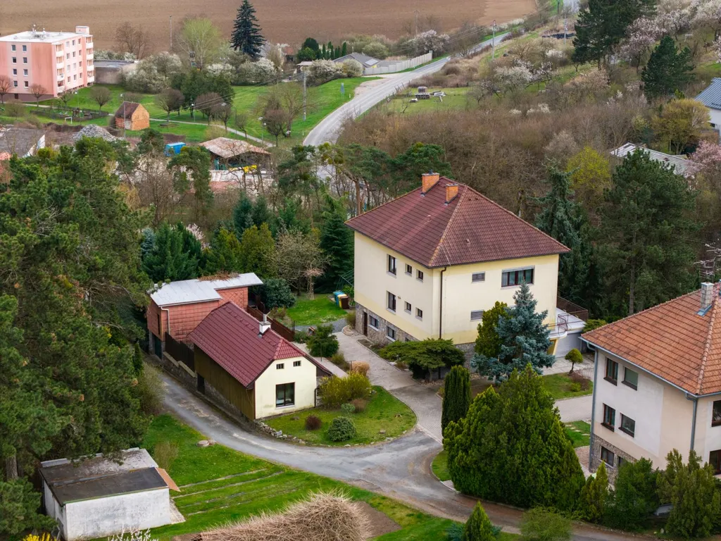 Vila o 3 podlažích nabízí velkorysou užitnou plochu s logickým členěním na reprezentativní, obytnou a technickou zónu. Součástí je i hospodářská budova a dvě garáže.