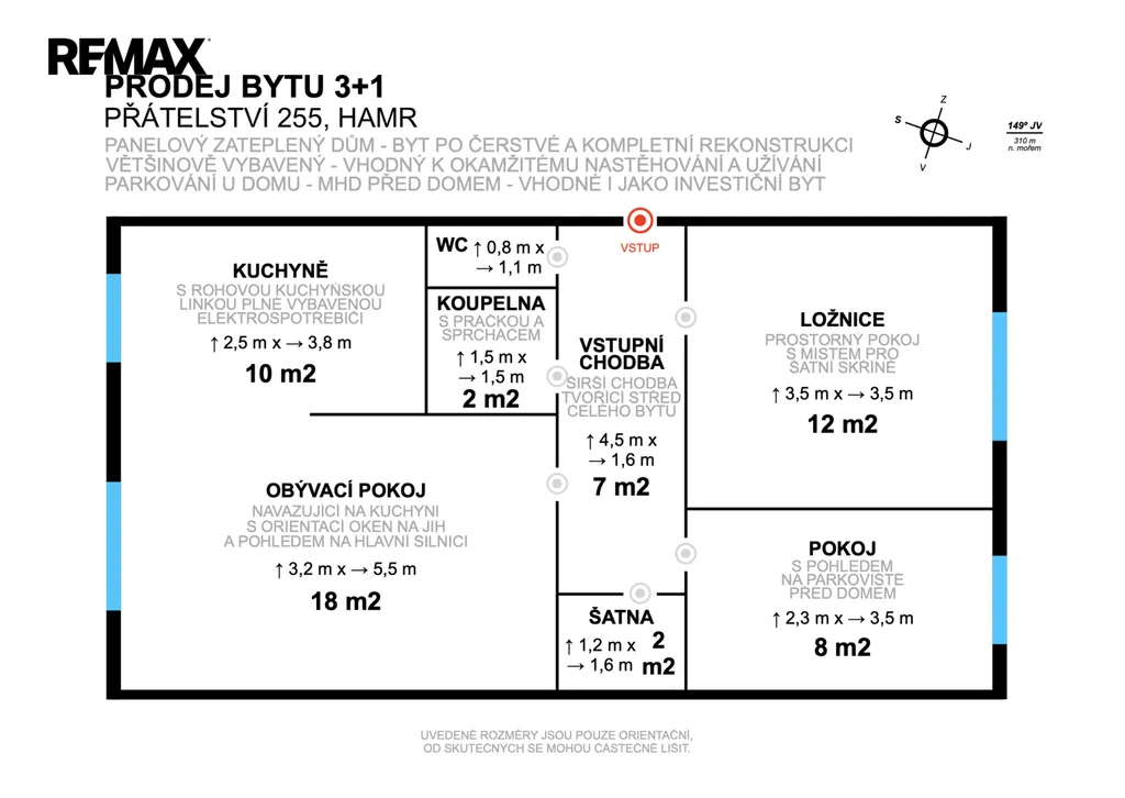 Dispozice bytu nabízí praktické a pohodlné bydlení: