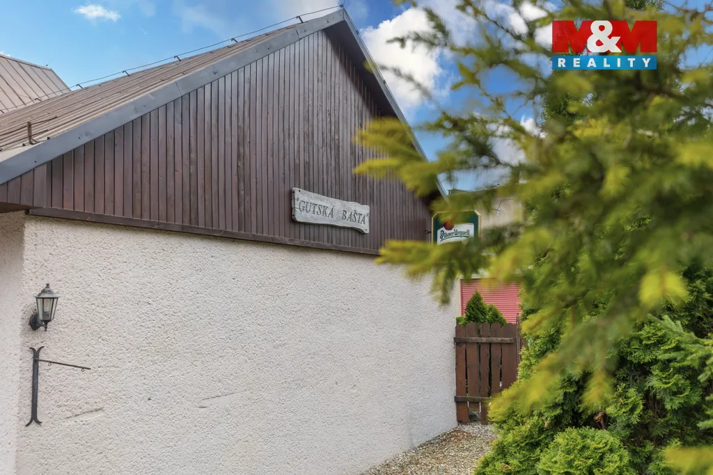 Tato cihlová stavba o 2 nadzemních podlaží je známá jako Gutská Bašta, vyhledávaná pro stravování, ubytovaní, svatby, oslavy apod. disponuje rozlehlými pozemky o celkové výměře 3 167 m² a sklepem.