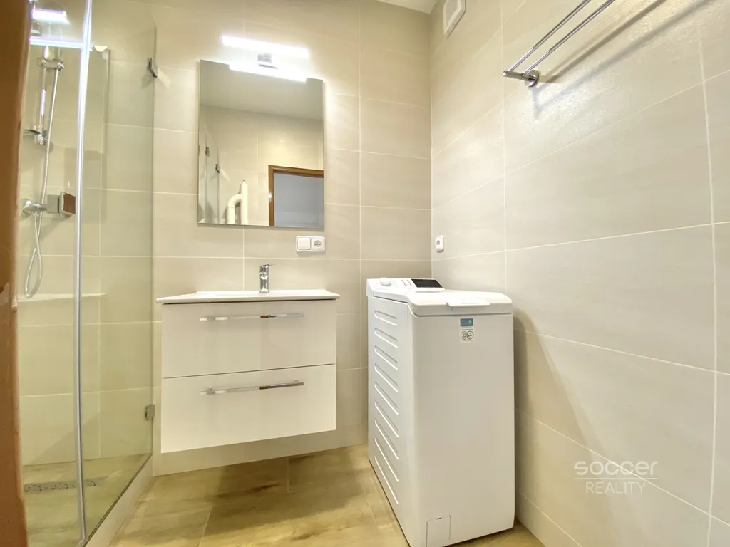 Světlý byt vám poskytne velmi kvalitní zázemí a komfort kompletně nového interiéru a všech nových spotřebičů (včetně myčky a pračky). K dispozici je zde pro vás velký obývací pokoj, moderní kuchyň s jídelním stolem, samostatná ložnice s lodžií (3m), vkusná koupelna se sprchovým koutem, samostatná toaleta, vstupní chodba a k bytu patří také sklep (cca 3m). Velmi povedenou rekonstrukci krásně podtrhují sladěné barvy i použité kvalitní materiály.