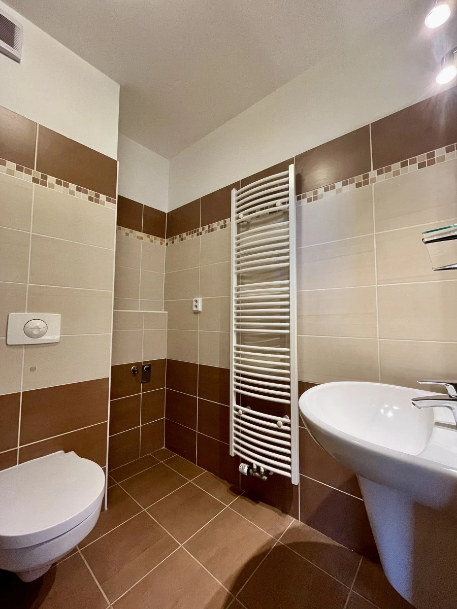 Byt je částečně vybavený – kuchyňská linka disponuje elektrickou troubou, sklokeramickou deskou s digestoří a myčkou. Koupelna s toaletou je společná a vybavená vanou. Samostatný pokoj nabízí dostatek prostoru i vestavěné šatní skříně.