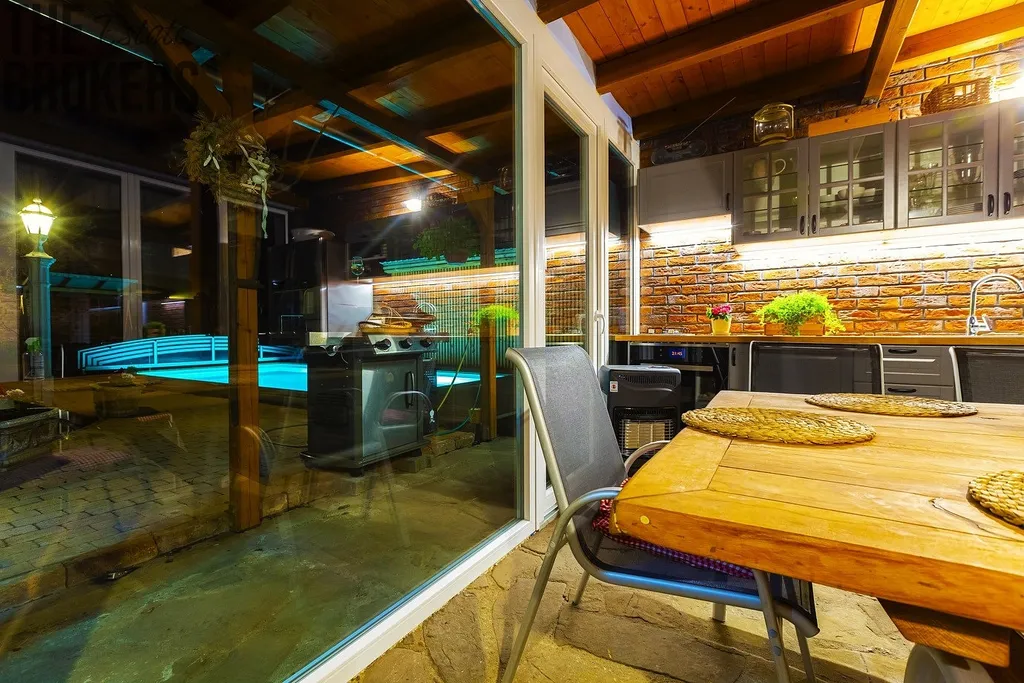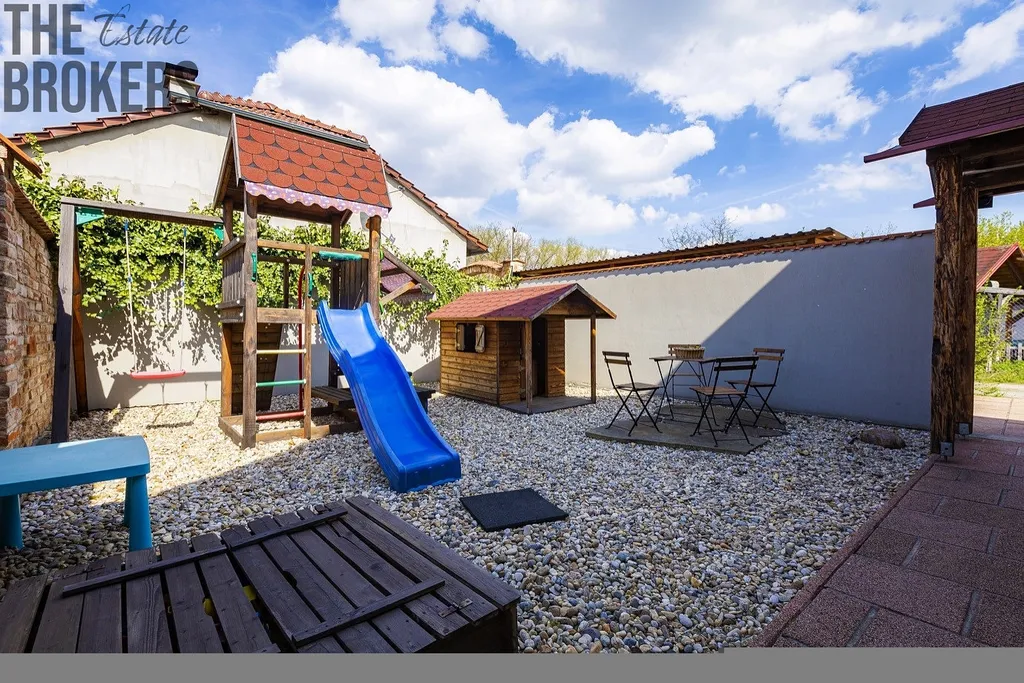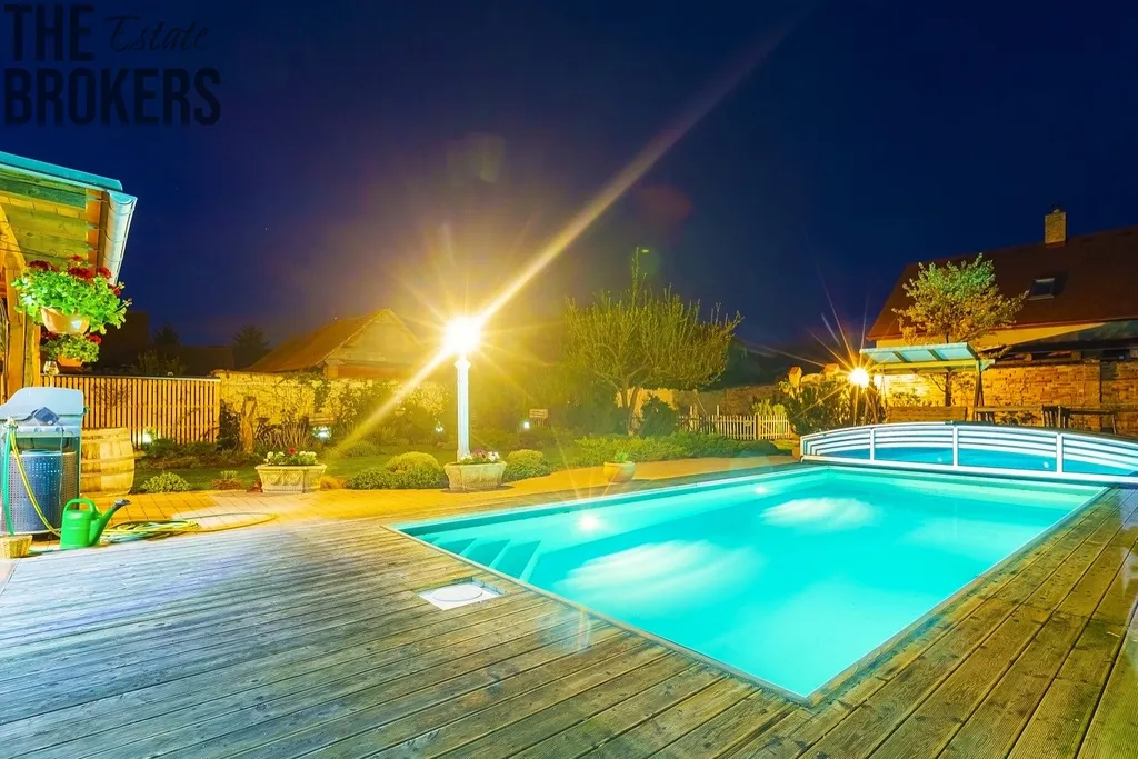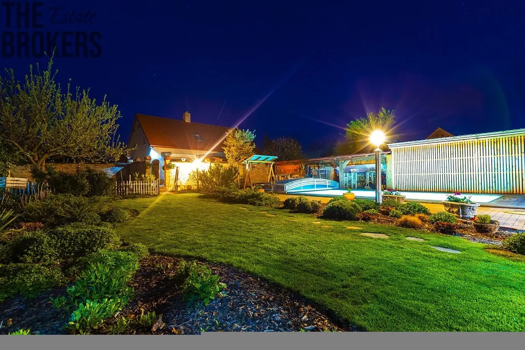 Dům o dispozici 4+kk (142 m²) nabízí plnohodnotné zázemí pro rodinu. Útulný obytný prostor s krbovými kamny, klimatizace v celém domě, fotovoltaiku + vlastní vrt (nízké provozní náklady), zahradu s bazénem se slanou vodou a soukromím, zastřešenou terasu a venkovní posezení.
