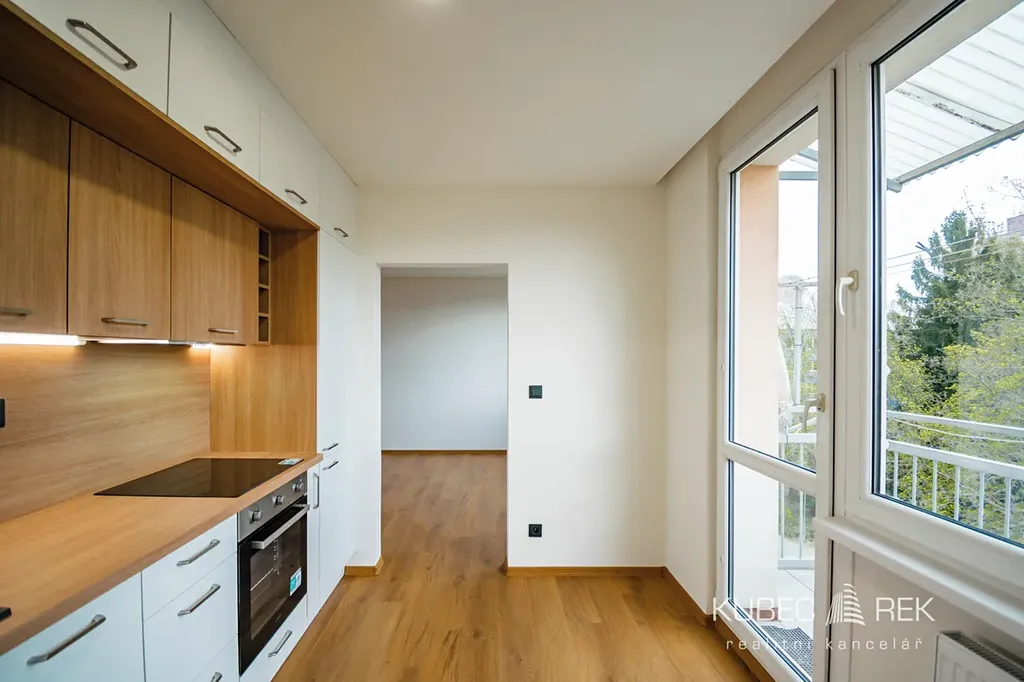 Velkým benefitem je plně vybavená a kompletně zařízená kuchyně, která je připravená k okamžitému používání. Najdete zde vestavné spotřebiče včetně lednice, myčky, elektrické trouby, indukční varné desky i digestoře. Byt prošel kompletní rekonstrukcí včetně vinylových podlah, sádrokartonových podhledů, nových omítek a nové elektroinstalace.