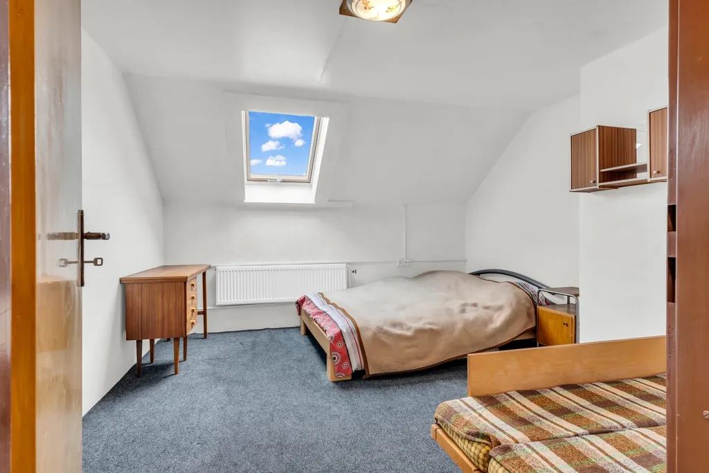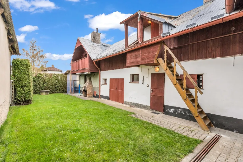 Dispozici domu tvoří 2 podlaží: přízemí je řešeno v dispozici 3KK a v případě nečekané návštěvy je možné využít 2 pokoje v patře, kde je rovněž prostorná ložnice a patro má rovněž svůj samostatný pokoj. Každé patro je vybaveno vlastní koupelnou. Dům je částečně podsklepen. Vytápění je řešeno plynovým kotlem, který zároveň řeší i ohřev vody . Součástí zahrady je i venkovní kryté posezení s krbem, dílna, bazén, garáž, či skladové prostory. V celém objektu naleznete vše potřebné k běžnému životu. Nemovitost je ve stavu k okamžitému bydlení.