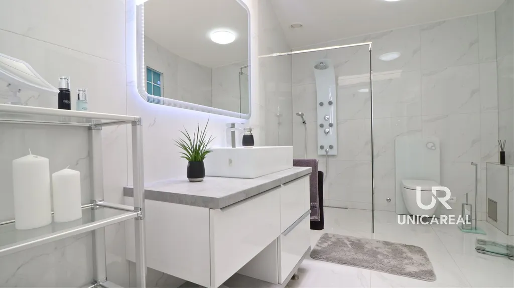 • Jedná se o bezbariérový dům 4+kk o velikosti 125m² s moderním vybavením a dominantním obývacím pokojem + prosklené, vyhřívané wellness zázemí o užitné ploše 74m² . V hlavní ložnici s výhledem do zahrady je šatna a koupelna s parním boxem. Dům má ještě druhou prostornou a designovou koupelnu a technickou místnost kde je instalován střídač a baterie na výkonnou fotovoltaickou elektrárnu.