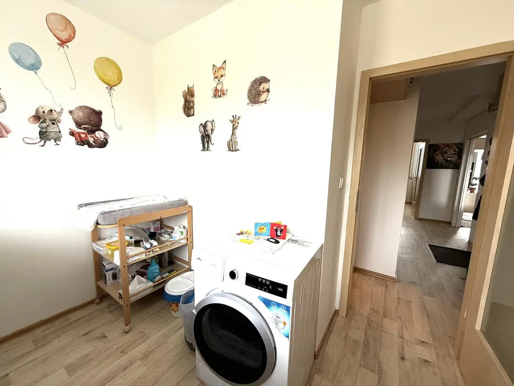 Poslední pokoj o výměře cca 9,2 m and sup2; je rovněž vybaven vestavnou skříní a pracovním stolem. Tento pokoj je ideální jako dětský pokoj, pracovna či ložnice.