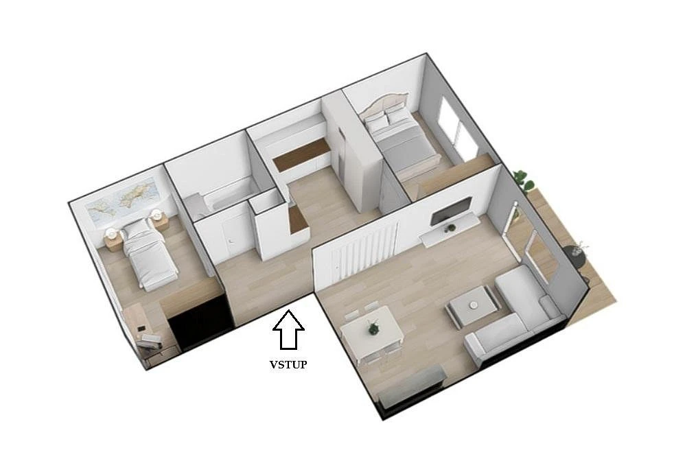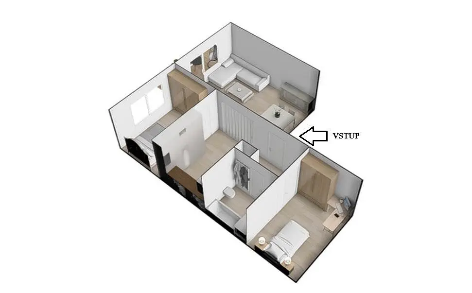 Po vstupu do bytu se ocitnete v prostorné vstupní chodbě o celkové výměře cca 4,3 m and sup2;. Tato chodba je přehledně řešená a zajišťuje pohodlný přístup do všech místností v bytě, což výrazně zvyšuje komfort bydlení a soukromí jednotlivých pokojů.