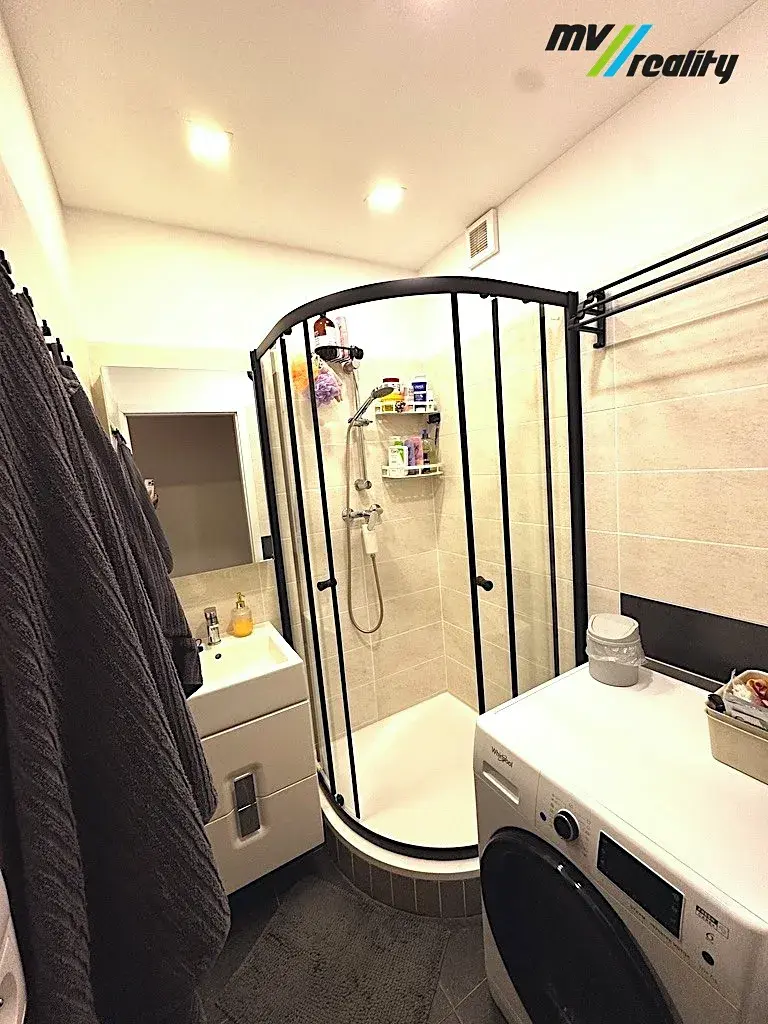 - koupelna: sprchový kout, umyvadlo a pračka se sušičkou.