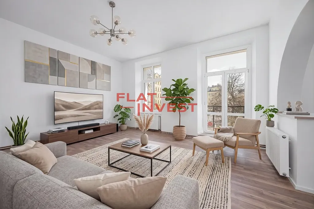 Nabízíme k pronájmu nezařízený, zrekonstruovaný a útulný byt o dispozici 3+kk a podlahové ploše 106 m² s balkonem v 2. NP zrestaurovaného činžovního domu v centru Liberce.